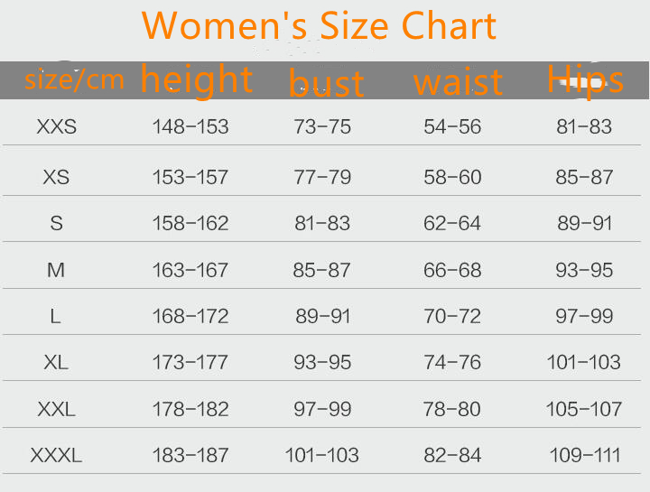 Size: XXS, XS, S, M, L, XL, XXL, XXXL