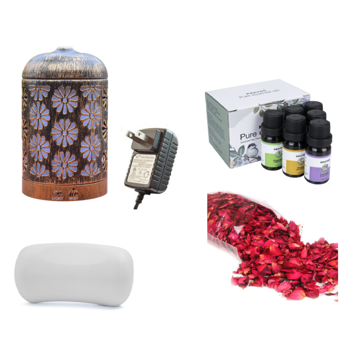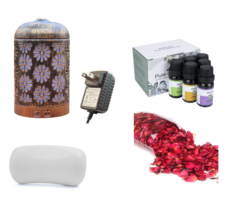 Packing list: Humidifier*1+Plant essential oil*1+Bathtub pillow*1+Rose dried petals 100g