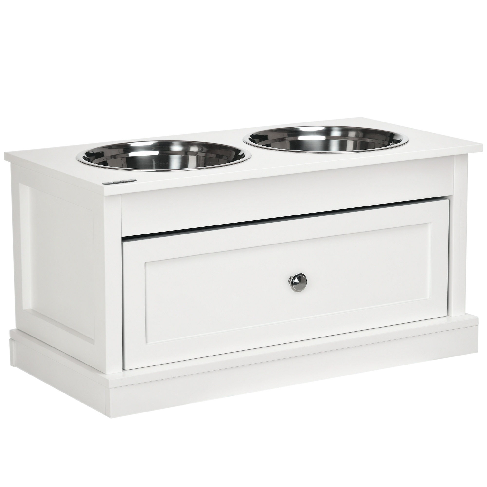 • - Large drawer for keeping everything under the food and water bowls