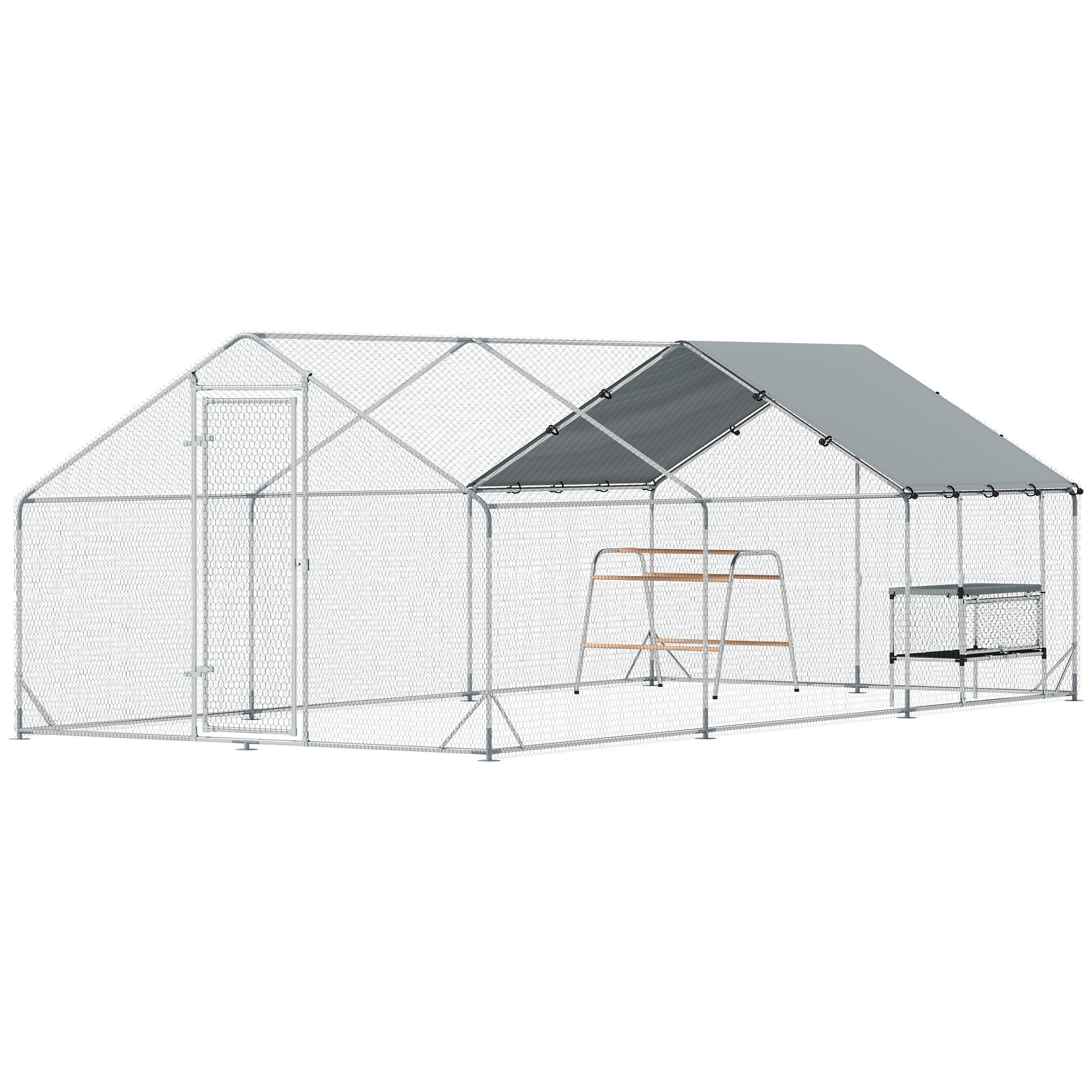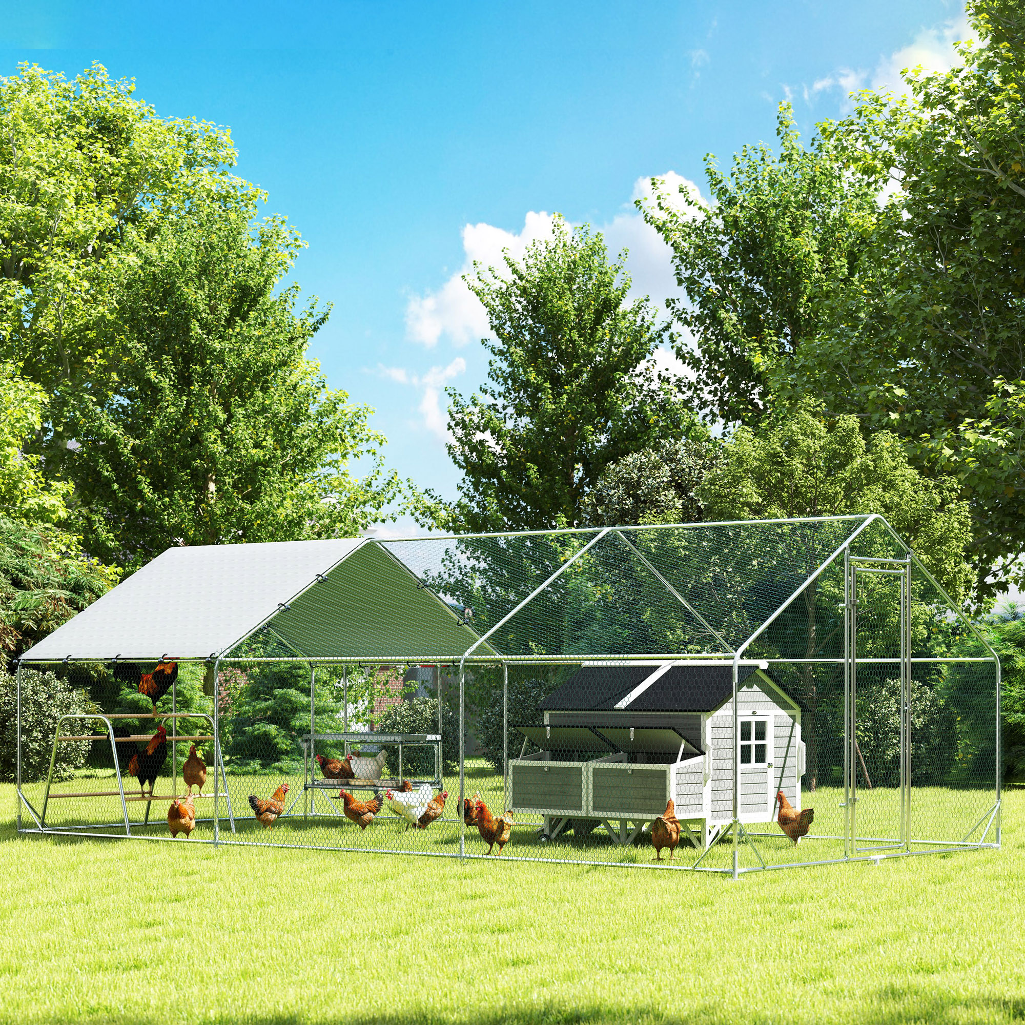 Large Metal Chicken Coop with Waterproof Cover, Roosting Bar, Nesting Box, 9.8' x 19.7' x 6.4'