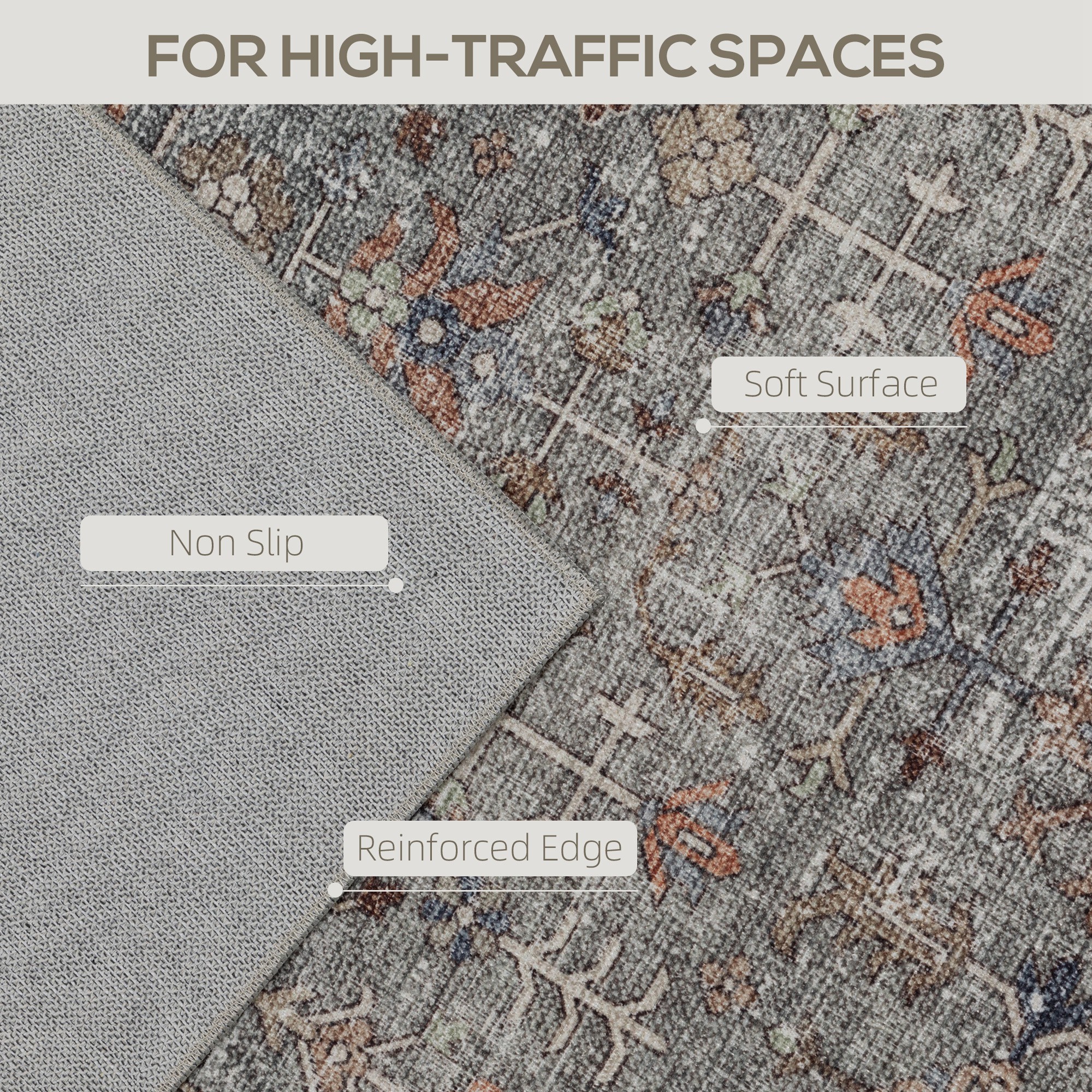 Step into comfort and style with the [BRAND NAME] washable rug. It features a vibrant traditional pattern that adds warmth to any living room, bedroom, or hallway. Made from soft chenille, this bedroom rug feels gentle underfoot and is easy to care for. The machine is washable and equipped with a non-slip TPR backing, so it stays secure while keeping maintenance simple.