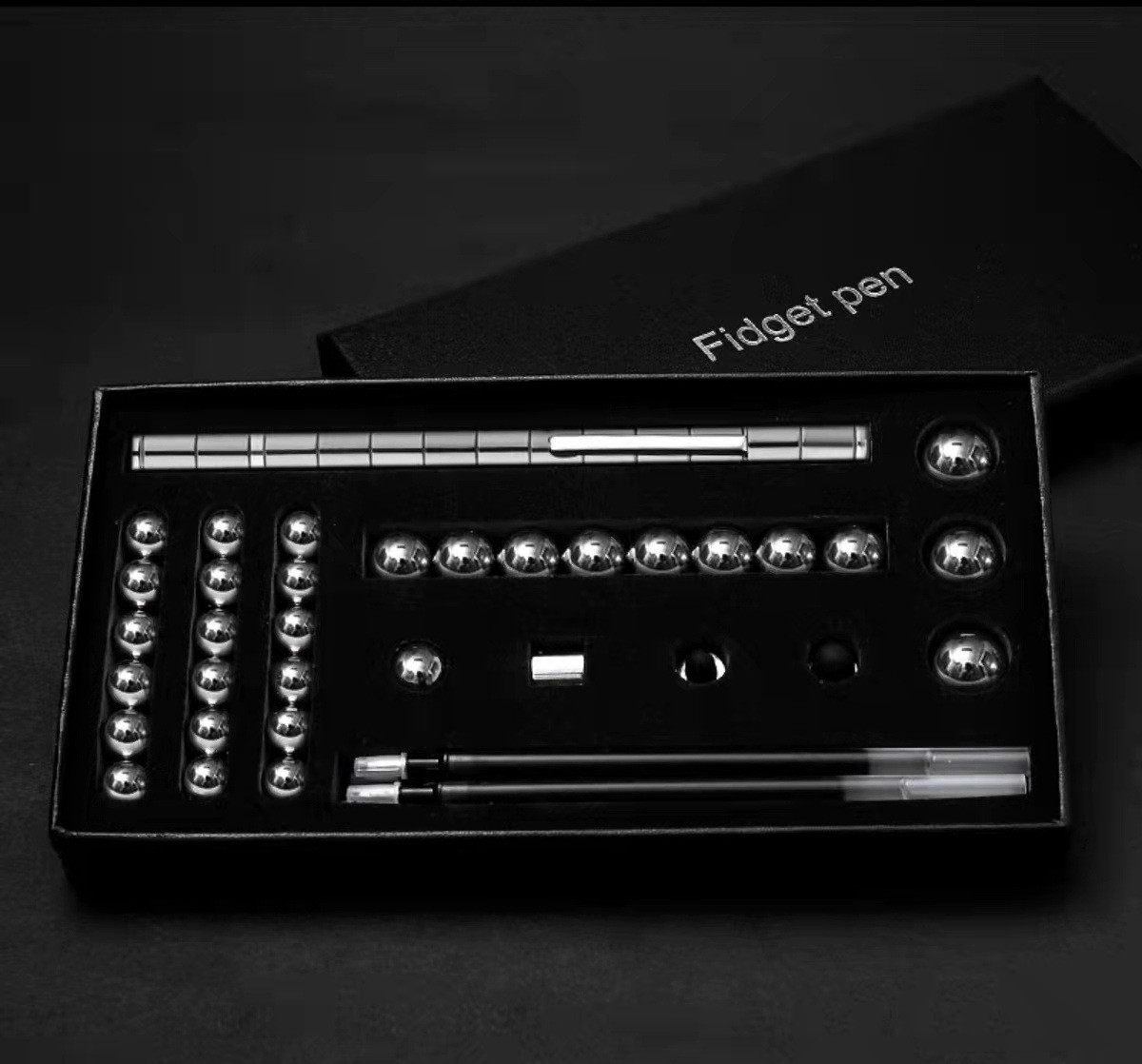 4 styles: upgrade black iron box packaging (13 magnetic rings + 12 steel balls + 3 refills + 2 capacitor heads + exquisite iron box)