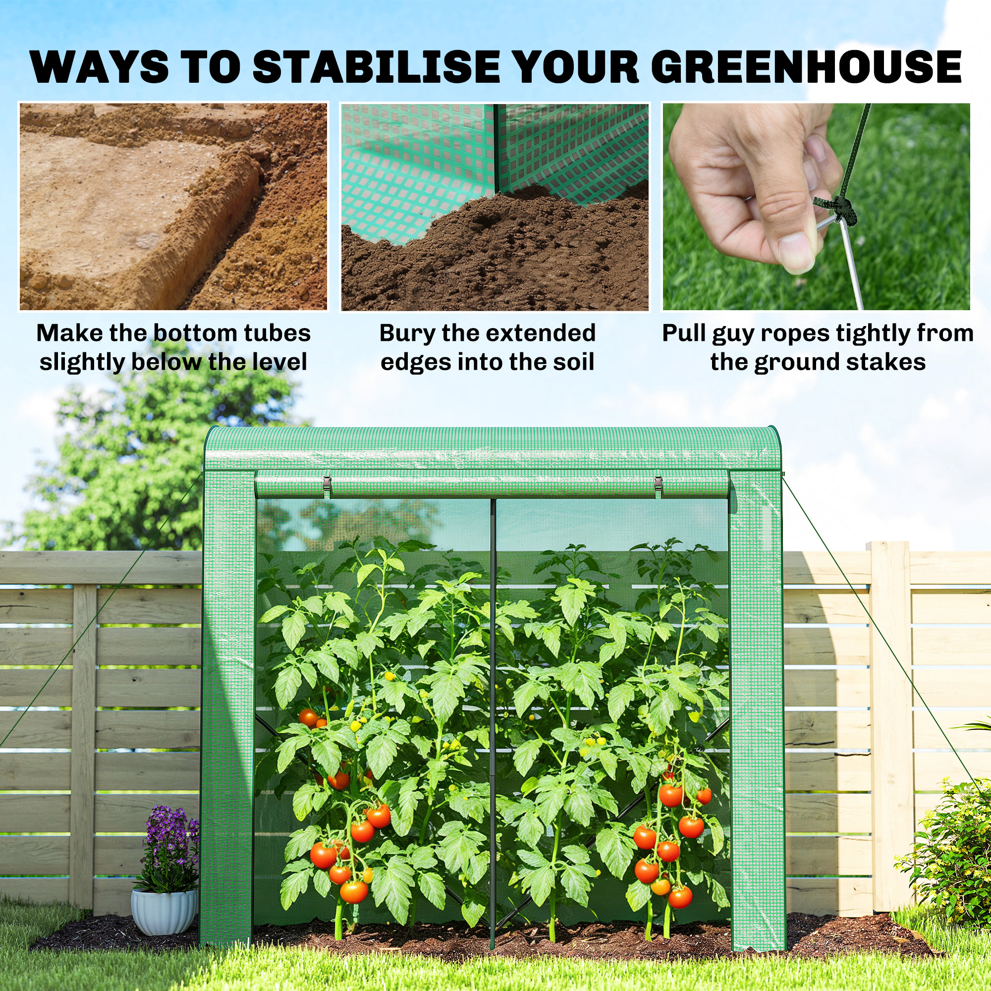 Tired of unpredictable weather and unwanted guests threatening your garden? The [BRAND NAME] greenhouse eases your worries. Its steel frame with diagonal poles and securing hardware ensures stability, while the PE cover creates a nurturing microclimate. Roll-up door is great for ventilating and managing your plants. With its ventilated mesh windows, your plants can thrive in this secure sanctuary. Great for every green thumb looking for a greenhouse to cultivate their garden polytunnel paradise!