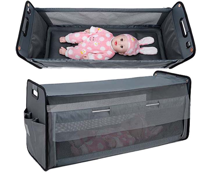 The cot is supported by two telescopic rods, which can be extended or shorten as needs, so that cot can be folded easily. [ small bag, great use ] When baby grows up, the bag can be used as moms daily bag or use the cot as kids toys basket or use it as storage bag at home or in the car or another place that you image.