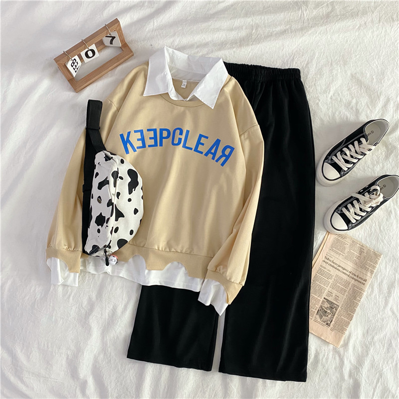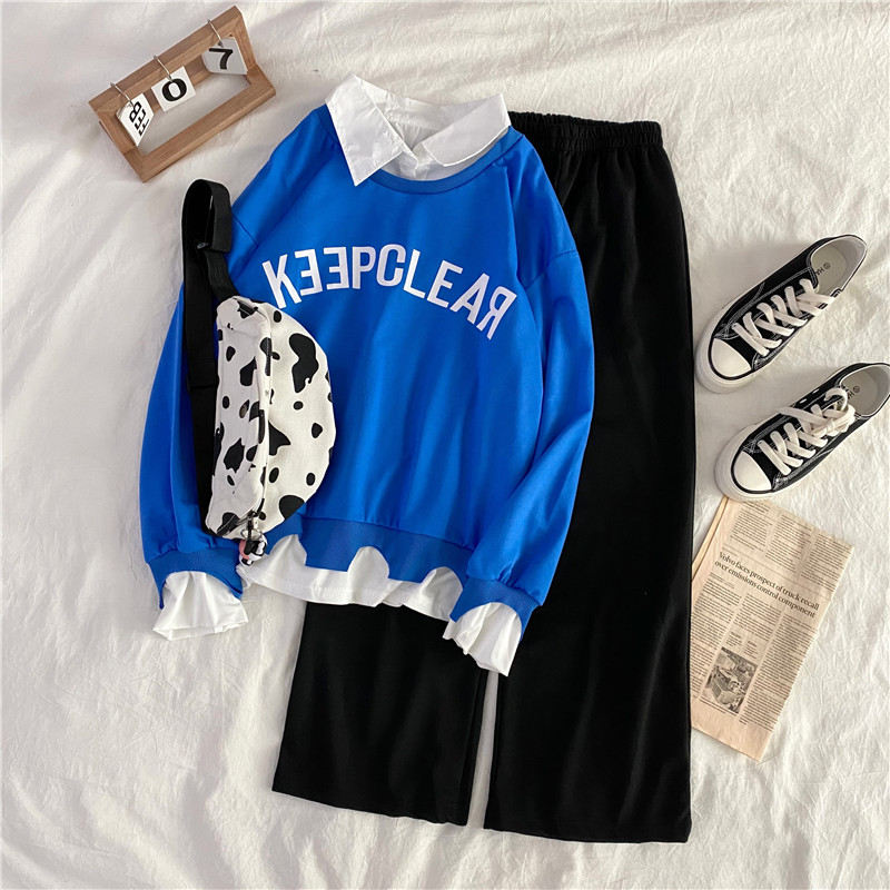 Color classification: Black sweater + wide-leg pants[two-piece suit] apricot sweater+wide-leg pants[two-piece suit] blue sweater+wide-leg pants[two-piece suit]