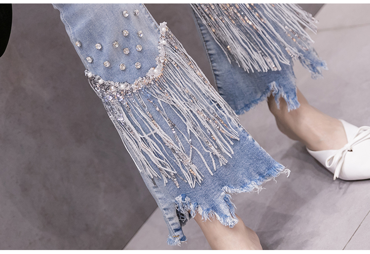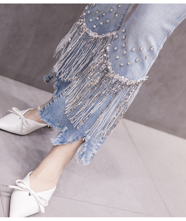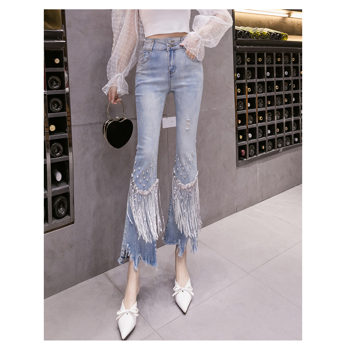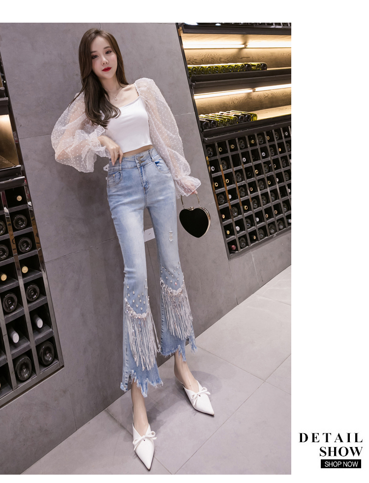 Features:Denim flared pants