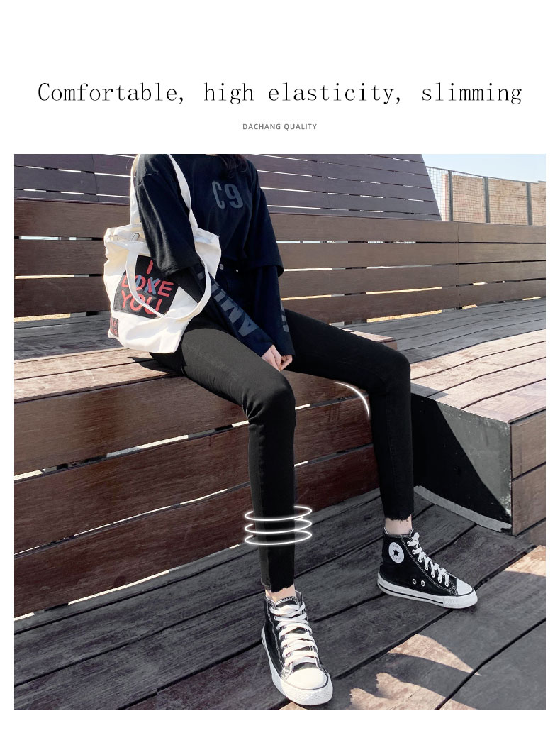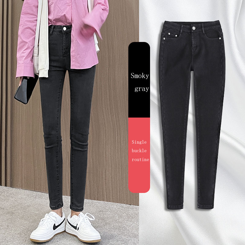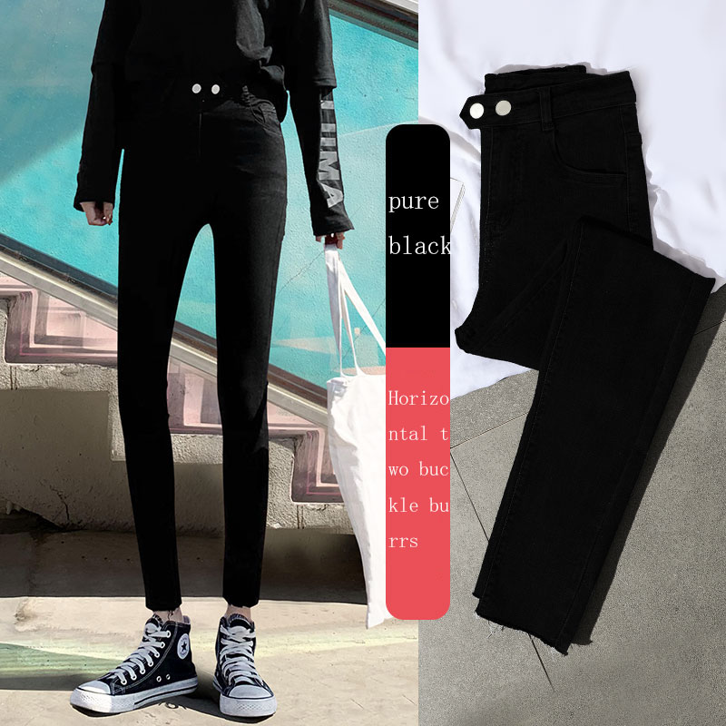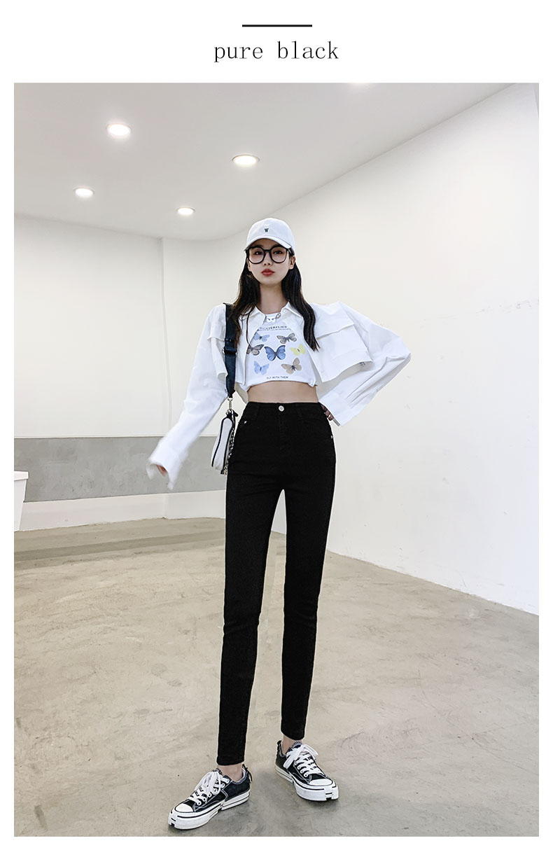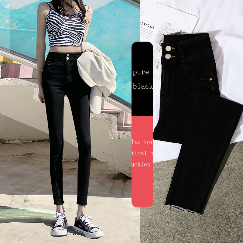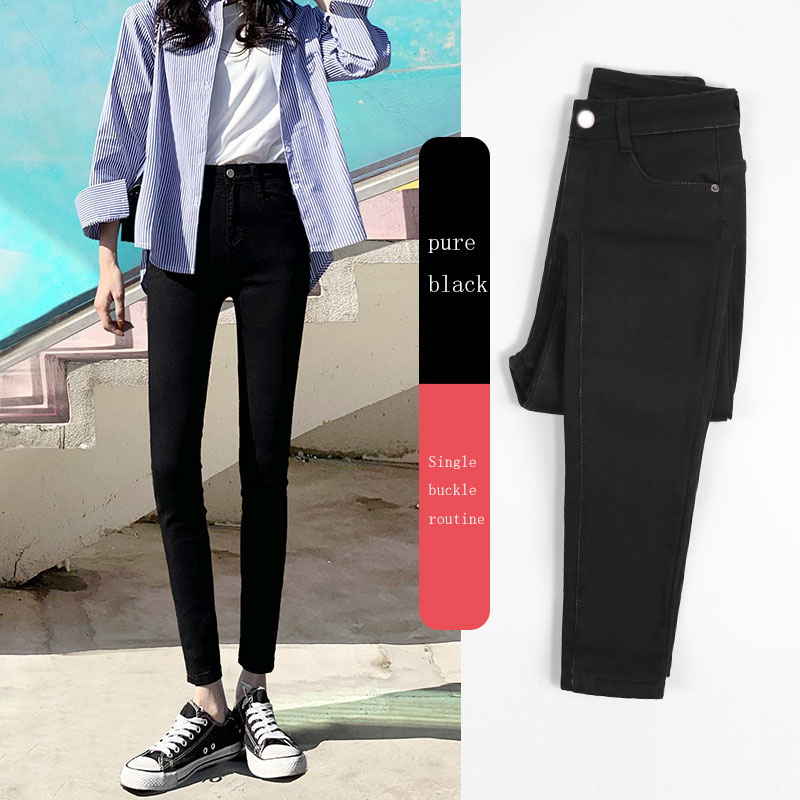 New Spring High-Waist Jeans Women's Pants Tight-Fitting Slim Slim Black Nine-Point Pants