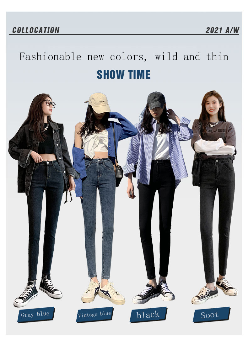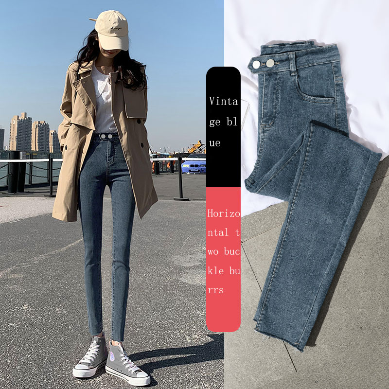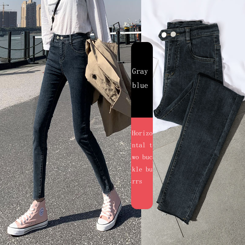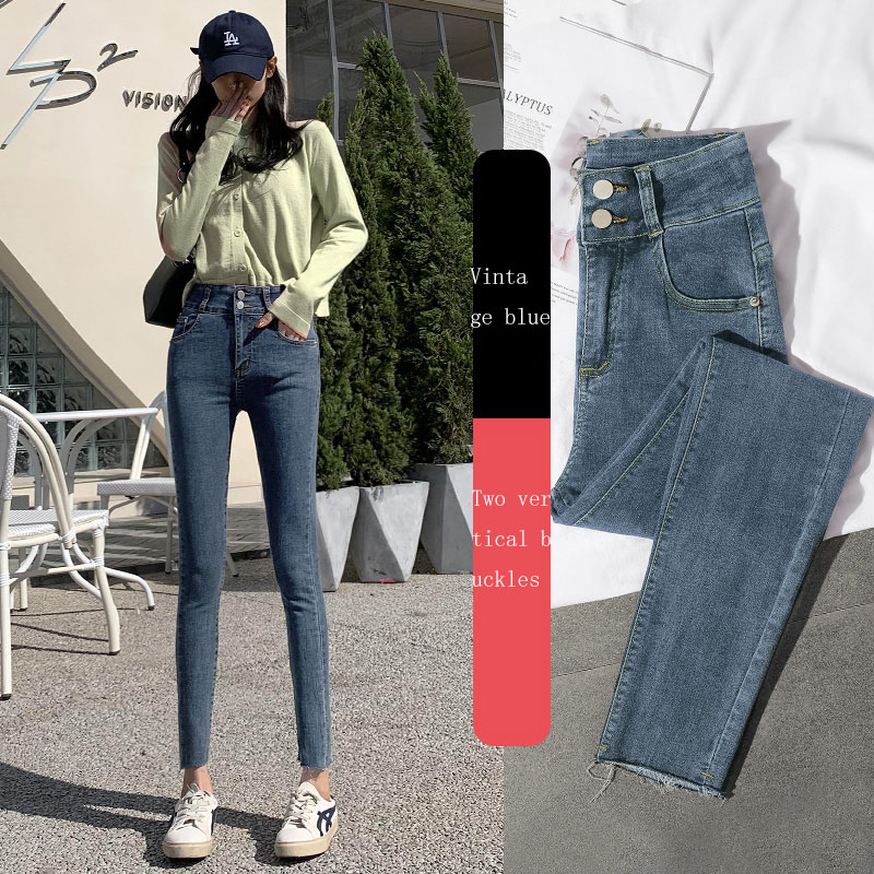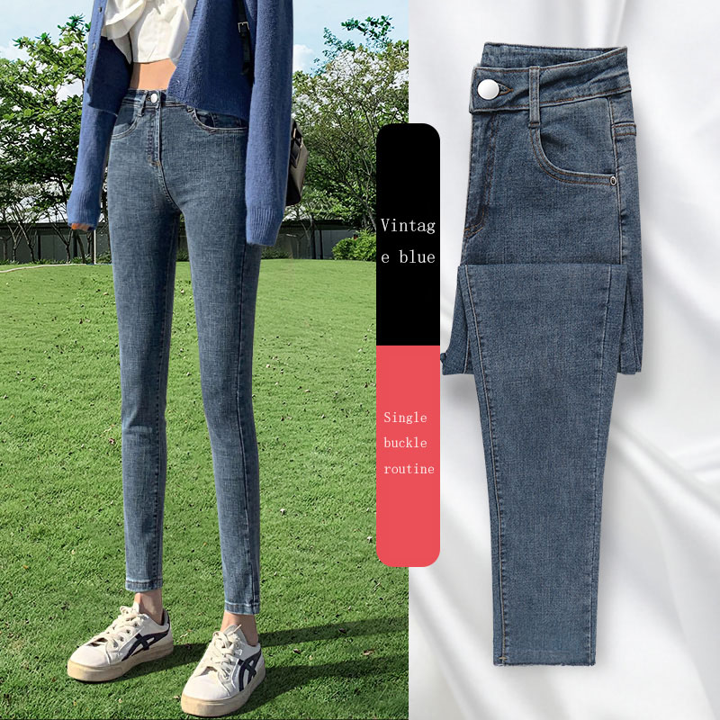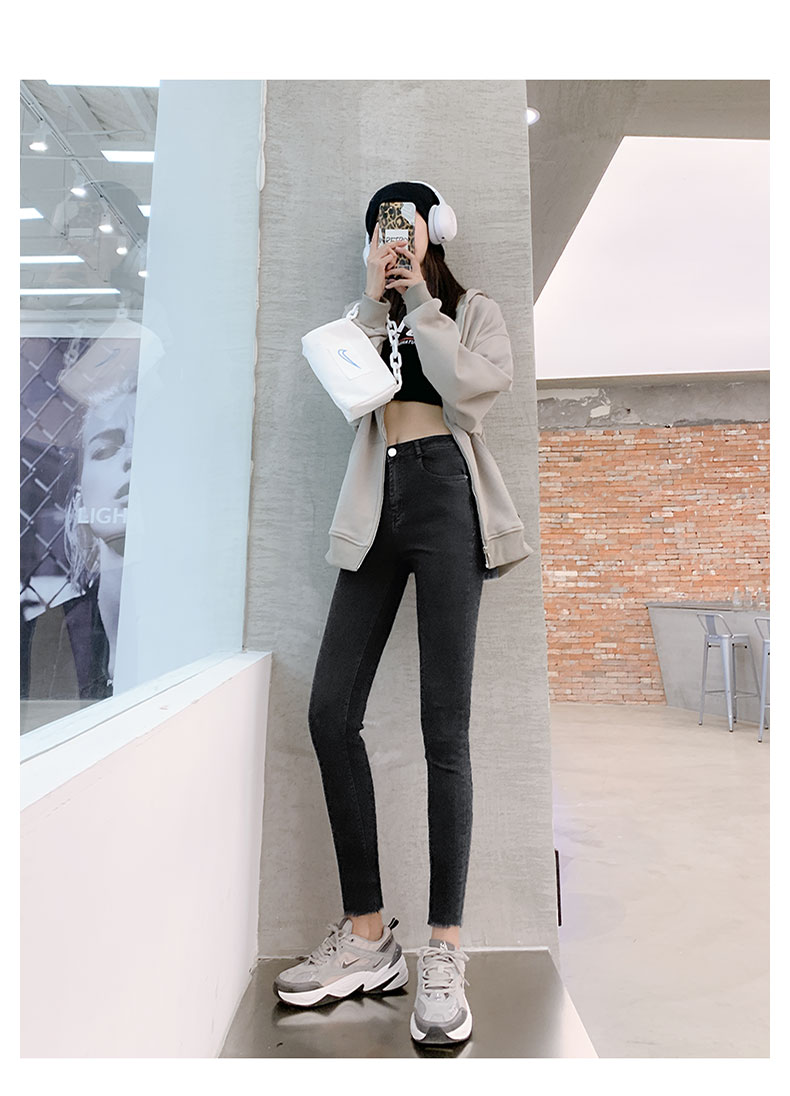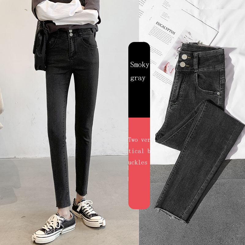 New Spring High-Waist Jeans Women's Pants Tight-Fitting Slim Slim Black Nine-Point Pants