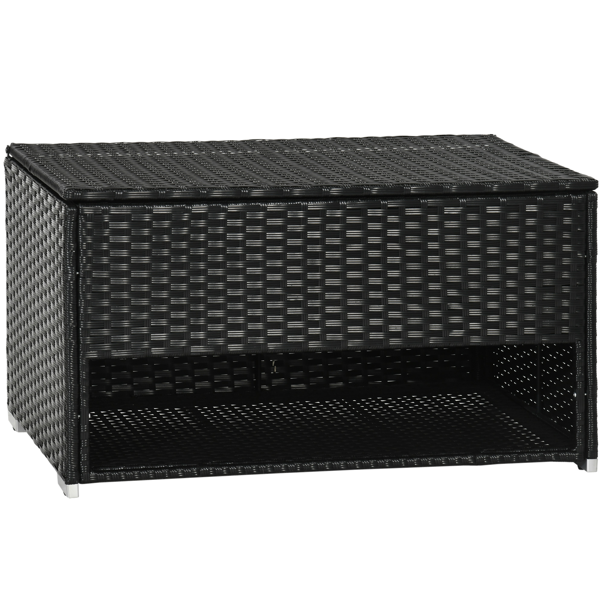 Keep your garden tools, or pool accessories clean and nearby with an [BRAND NAME] deck box. A lining keeps your belongings safe inside, and a hydraulic lift helps you open it with ease. Handwoven with PE wicker, it offers all the tropical style of the traditional type. Our outdoor storage offers more than just aesthetics; included is a special shelf you can use to store shoes or take up as a towel rack. On the porch or poolside, get inside out with [BRAND NAME].