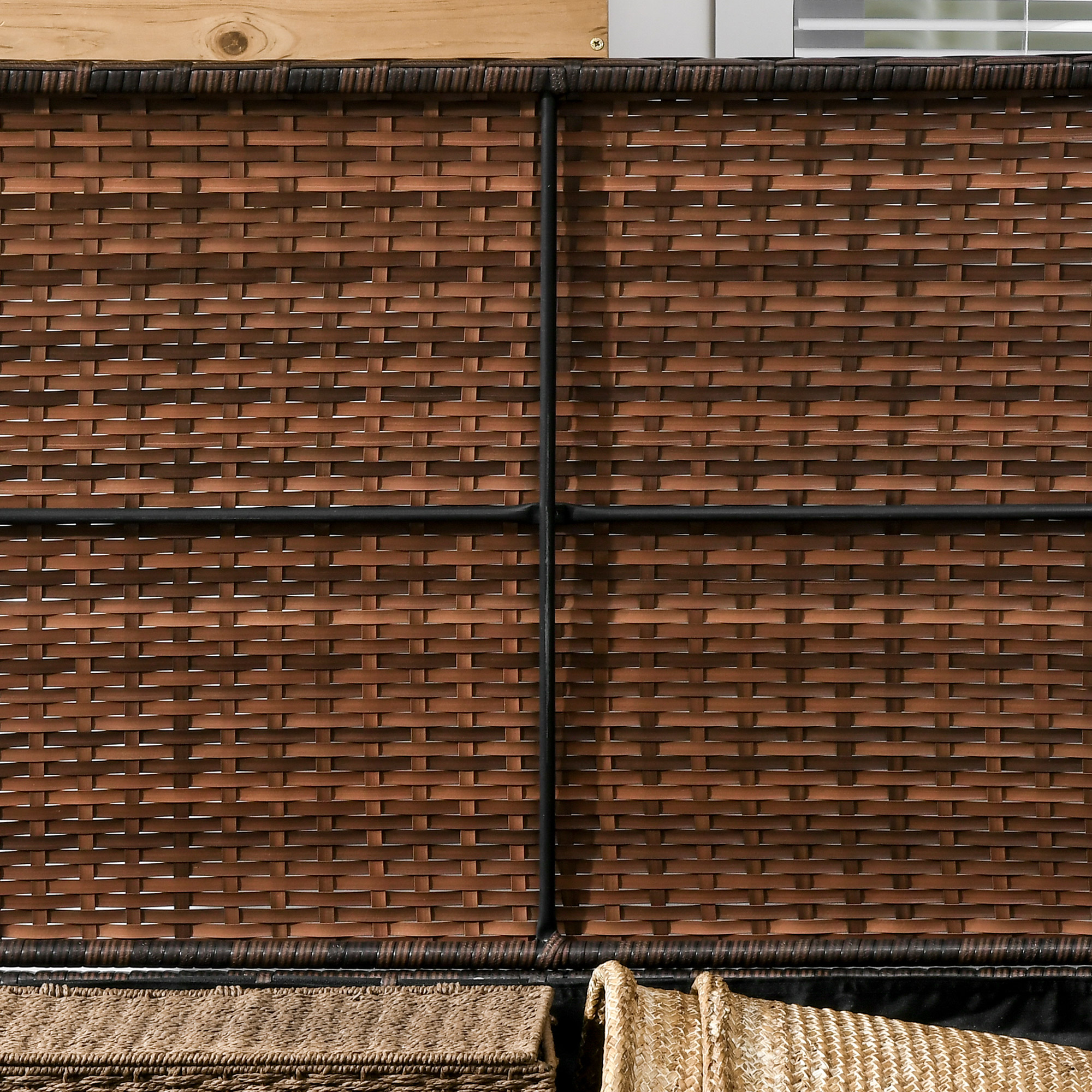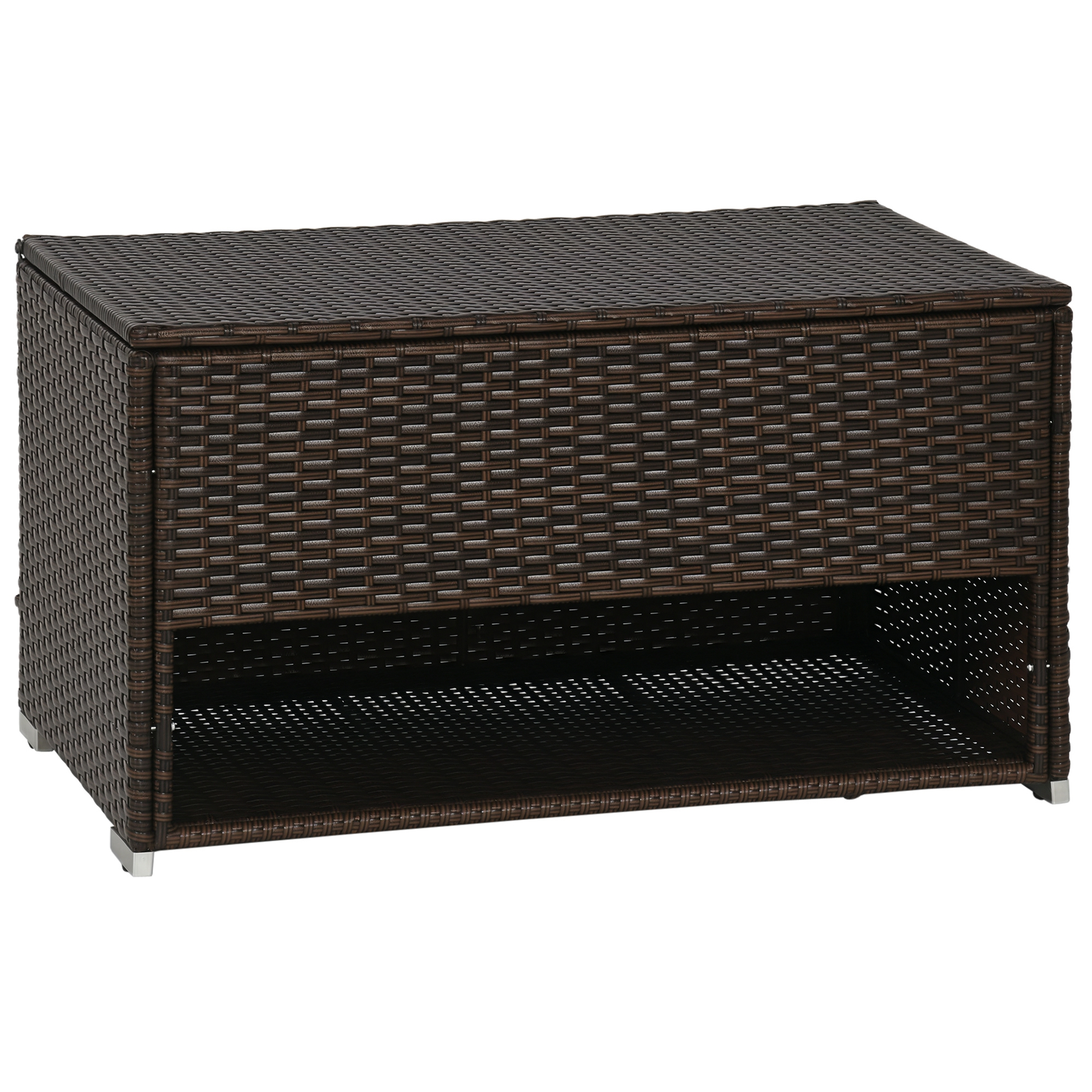 Keep your garden tools, or pool accessories clean and nearby with an [BRAND NAME] deck box. A lining keeps your belongings safe inside, and a hydraulic lift helps you open it with ease. Handwoven with PE wicker, it offers all the tropical style of the traditional type. Our outdoor storage offers more than just aesthetics; included is a special shelf you can use to store shoes or take up as a towel rack. On the porch or poolside, get inside out with [BRAND NAME].