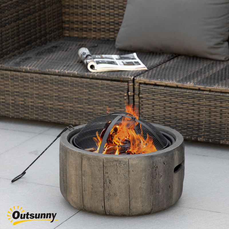 Whether you want to enjoy a barbecue beside the fire or curl up in warmth, our fire pit brings your outdoor lounge area to a new level. Crafted with a large metal bowl with woodgrain style, it's built with a high capacity, so you don't have to worry about frequent firewood refills. The provided poker can keep logs burning steadily, and offers a safe way to remove the protective top. Its rustic yet modern design is sure to be a shining centerpiece on your patio. Keep the fire going with [BRAND NAME].