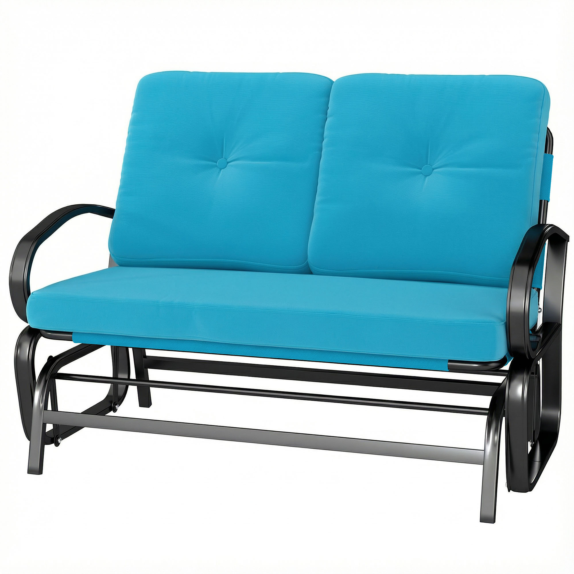 Bring indoor comforts outside with [BRAND NAME]. Our outdoor glider bench is a patio loveseat for two, making an excellent spot to break out a book or share the morning brew. Rock comfortably with a friend through the soft summer breeze, calmly, and quietly, making outdoor memories. Share an armrest with a friend; cushions comfortably coat all ends. Put on picnics, barbecues, and other events. It's easy to enjoy time outside with a glider for you. Get out, get comfortable, get [BRAND NAME].