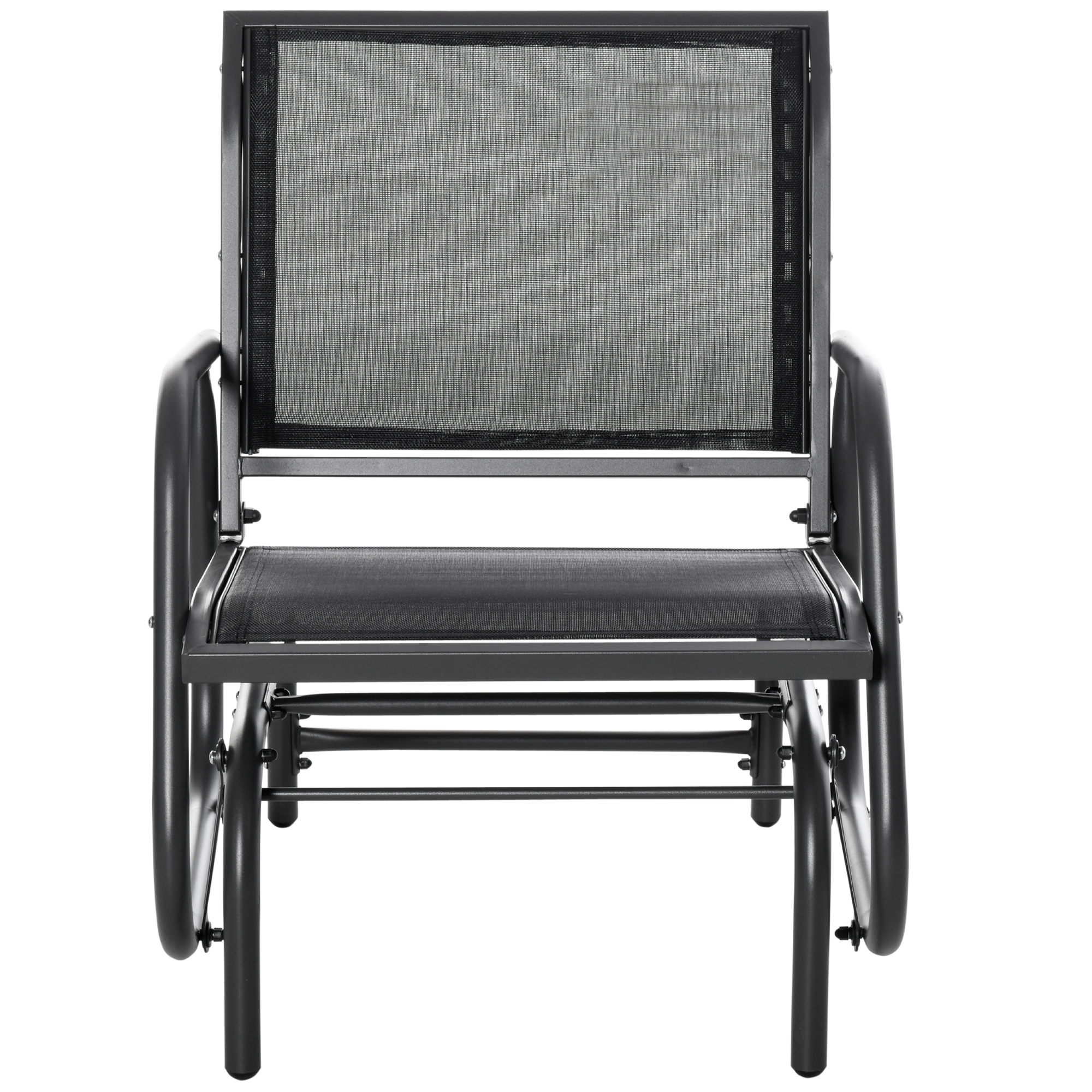 Glide through the summer with [BRAND NAME]. This outdoor patio glider offers form and function for any space outside: backyard, balcony, porch, pool, or garden; get gliding and sit in style. The seat of our outdoor glider chair is crafted from breathable mesh that stays cool in the summer sun and dries off fast. Sit back and take in the summer breeze without worry. Its frame is strong steel and it sits on nonslip foot pads to keep you from falling and stop surfaces from getting scratched.