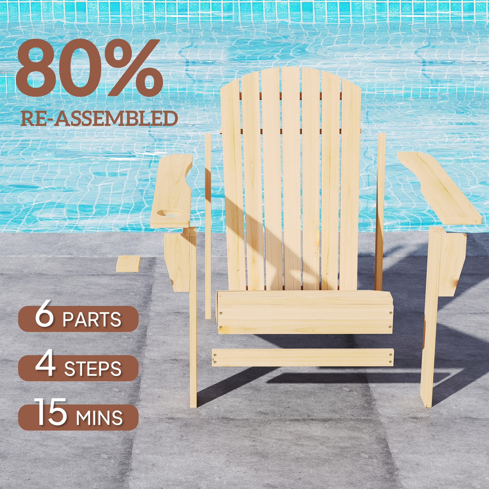 Lay low with [BRAND NAME]'s relaxed back Adirondacks. Their seats are comfortably slanted and their wide armrests are complete with a cupholder. Tough and stylish, our Adirondack chairs are made with fir wood and fashioned into 7 slats, offering heavy-duty strength and a wide design that accommodates most body types. Invite over almost anyone and keep them comfy. An Adirondack is excellent as fire pit seating or on the front porch for a picnic with fireworks. Get out, get comfortable, get [BRAND NAME].