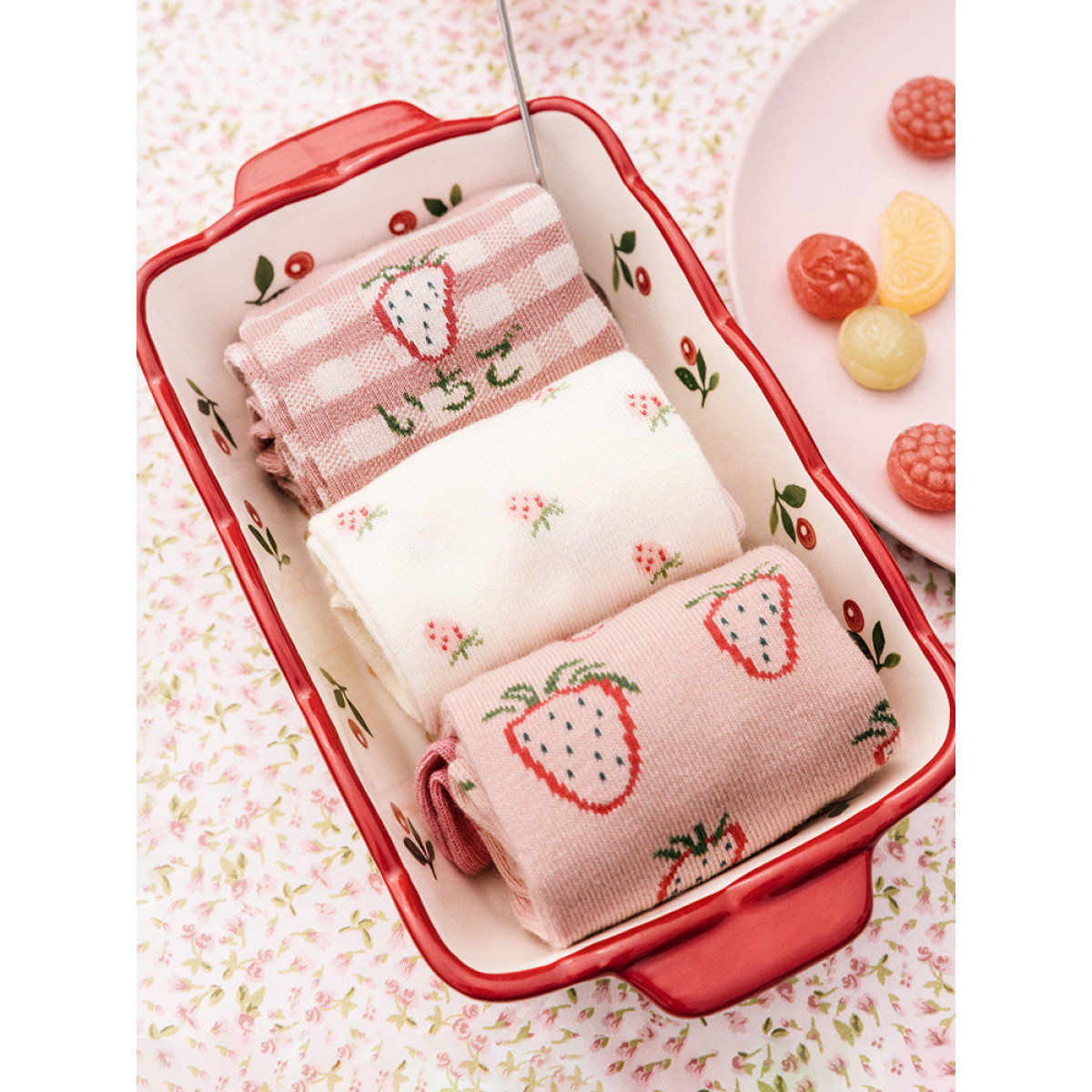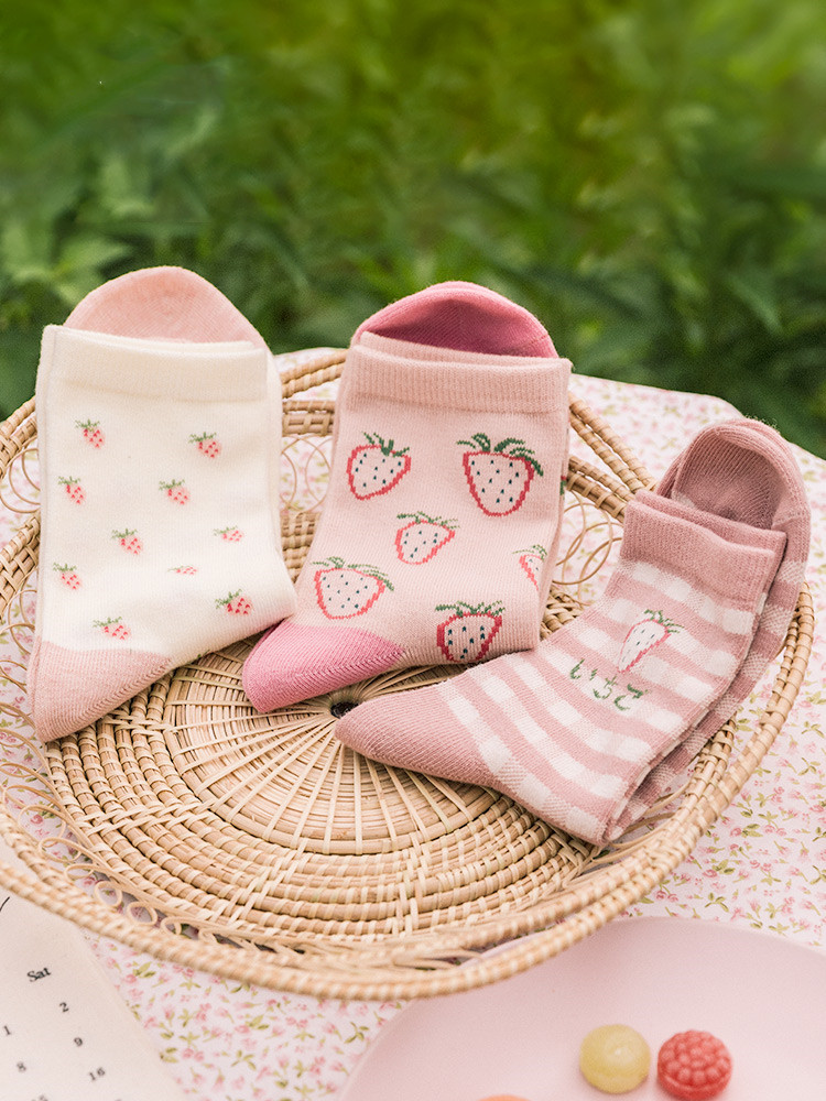 Color classification: autumn strawberry in the tube three pairs of women's socks