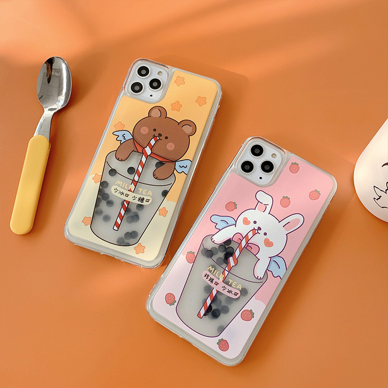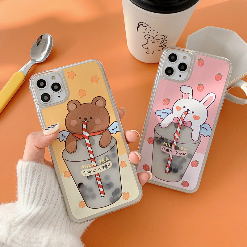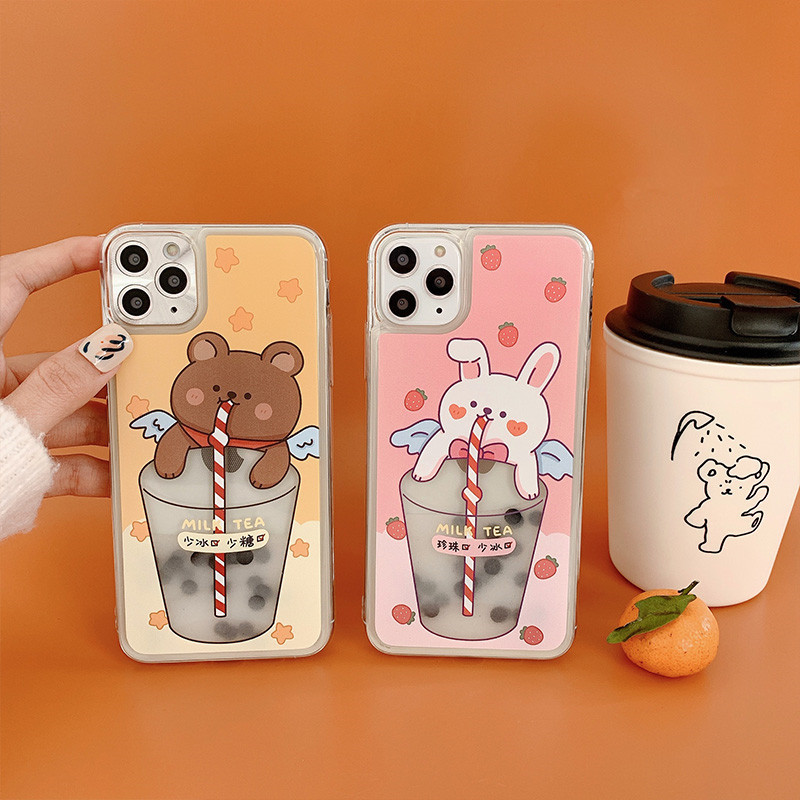 Cartoon mobile phone case with quicksand drink