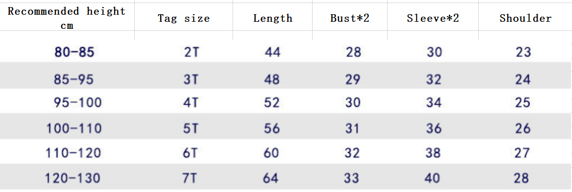 Suitable height: Whole hand wholesale (6 pieces per hand), 2T (85cm), 3T (90CM), 4T (100CM), 5T (110CM), 6T (120CM), 7T (130CM)