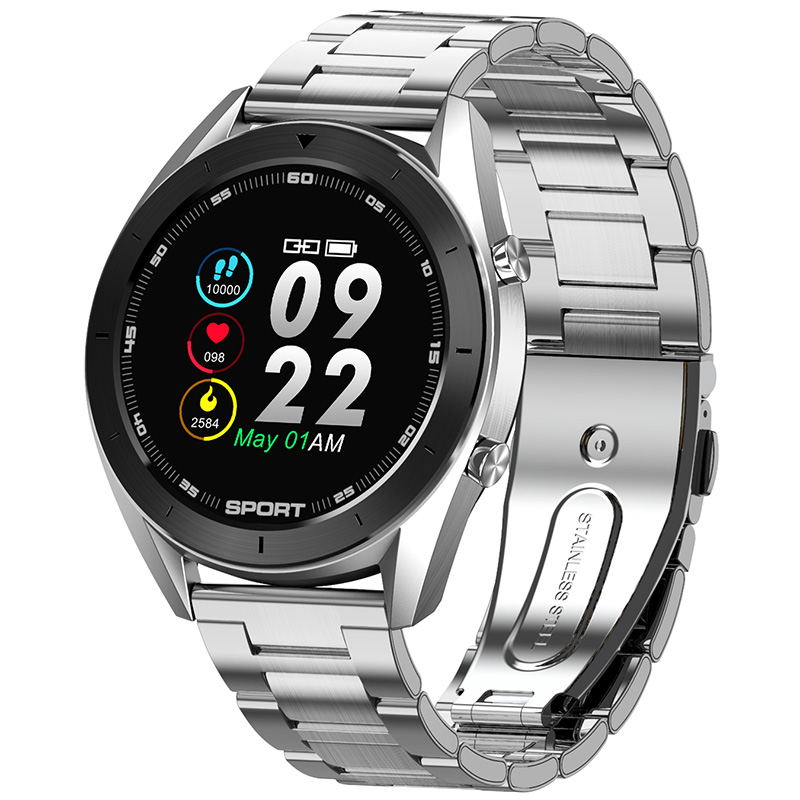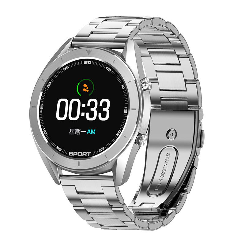 Function: compact appearance, metal shell, steel ring split body, large memory 10+ dial, heart rate, ecg, blood pressure, blood oxygen, more exercise, weather, step, stopwatch, remote photography, music control, monochrome silicone band