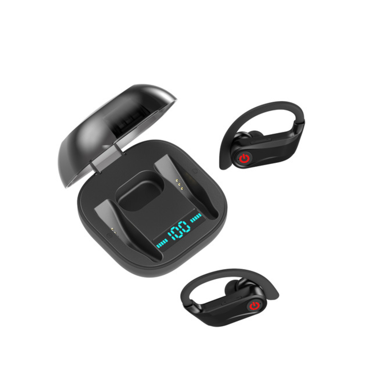 Headphones*2, charging compartment*1, charging cable*1, ear caps*4, manual*1