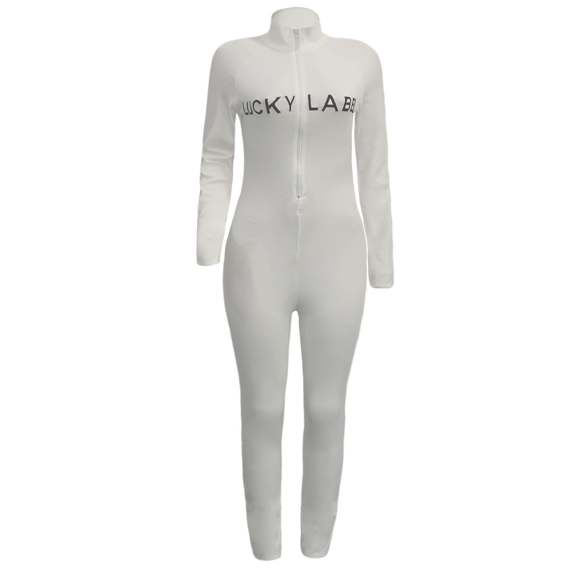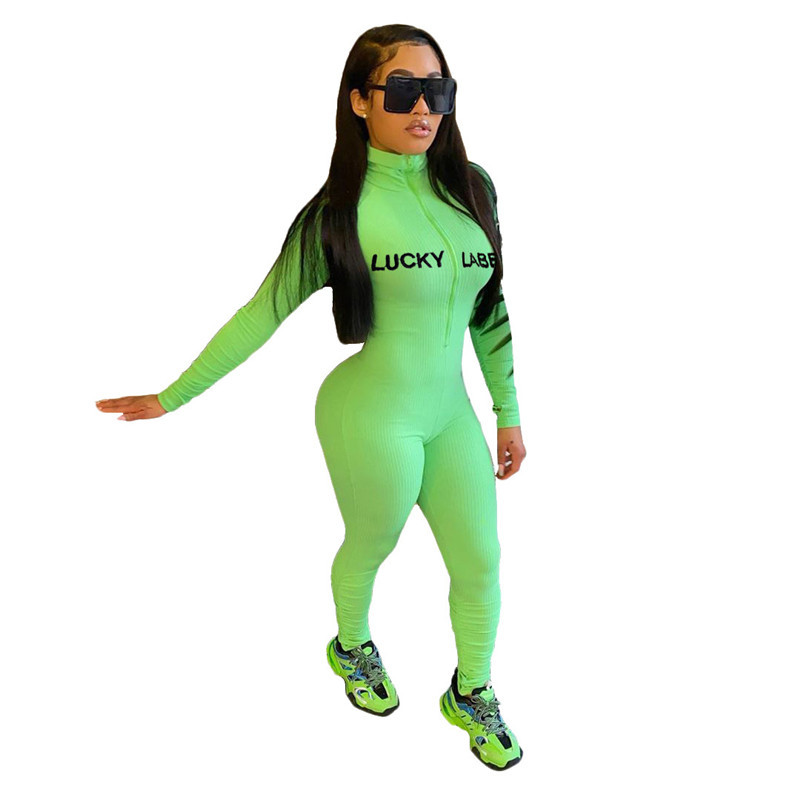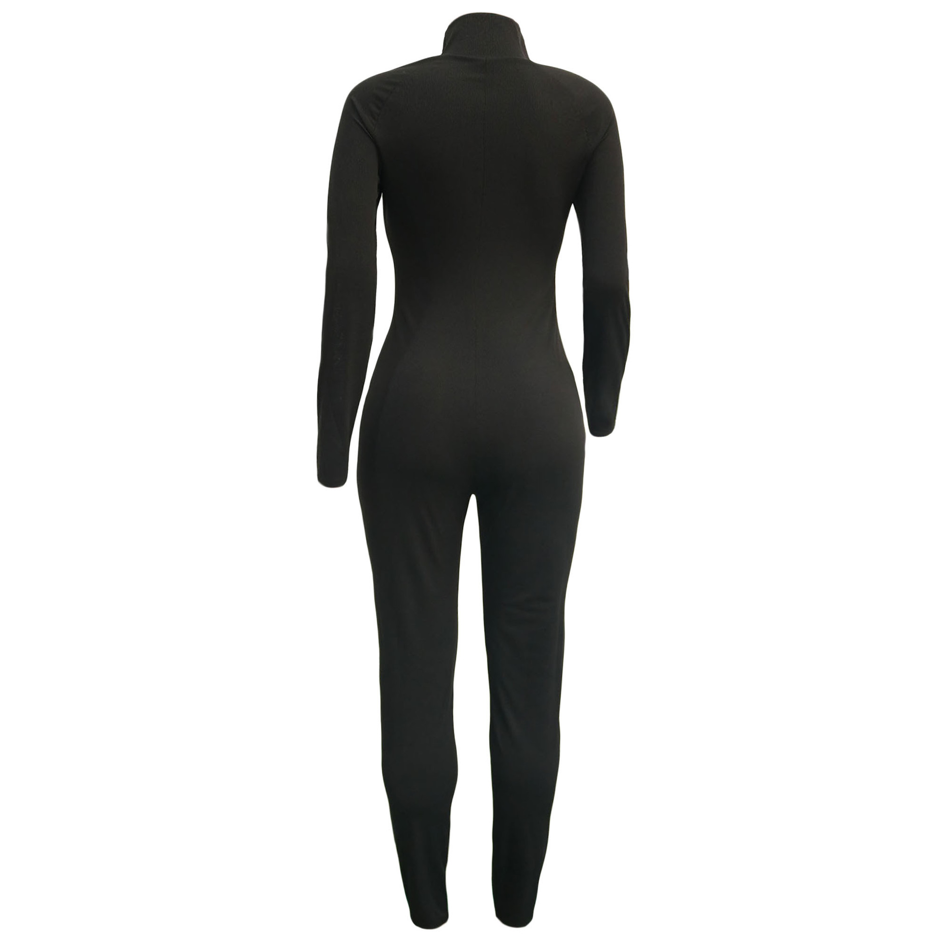 Name: S3877 European and American women's clothing wholesale sexy slim zipper solid color letter embroidery pit stripe one-piece trousers pencil pants