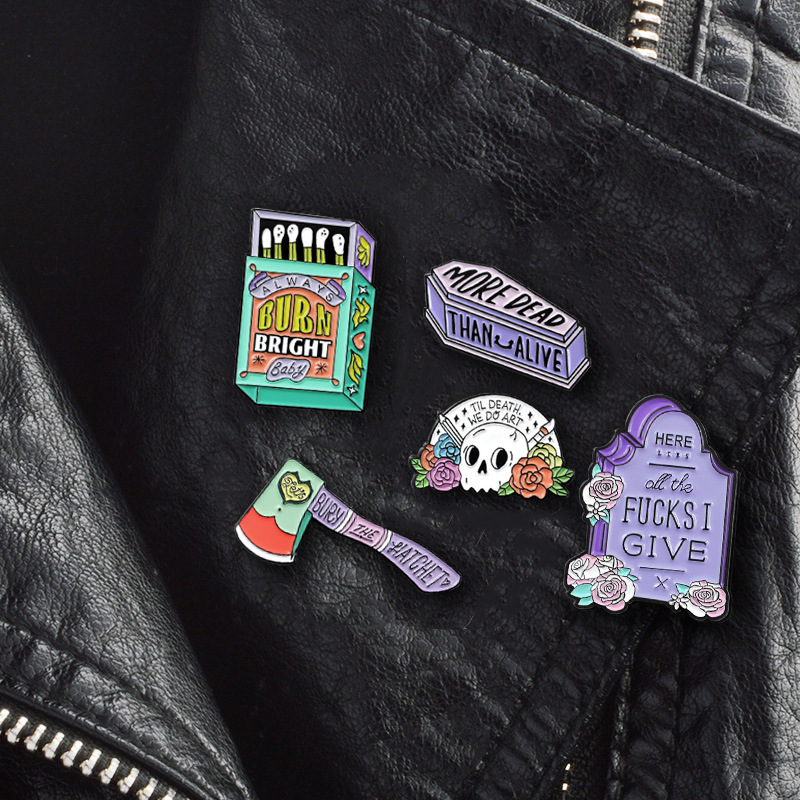 Cross-border hot sale new cartoon skull matchbox and axe combination brooch fashion jewelry