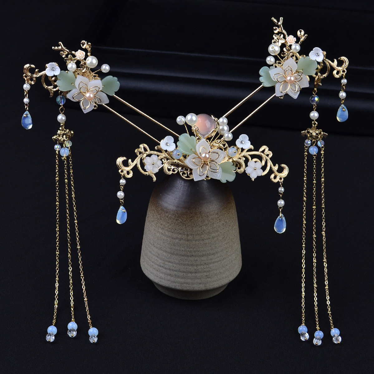 Hanfu headdress hairpin tassel full set of ancient style hair crown suit Bu Shao ancient costume hairpin hair crown suit Hanfu jewelry