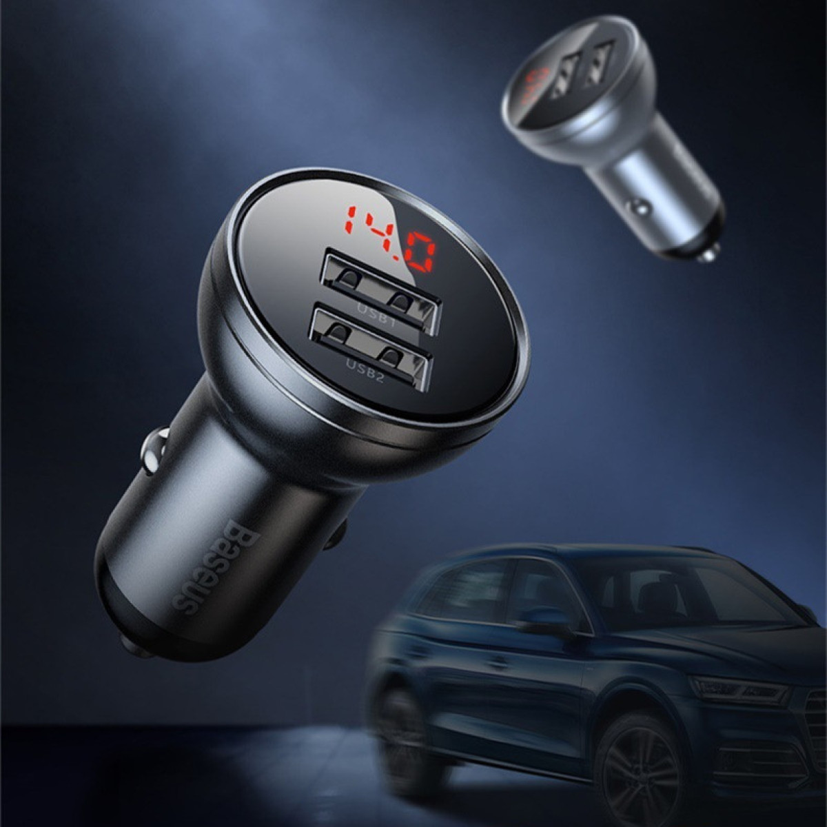 Baseus Double Display Metal Digital Display Dual USB Car Charger Compatible with 4.8A Fast Charge Mini Car Charger 24W