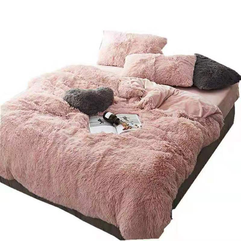 Web celebrity Korean version cloud mink velvet coral velvet solid color mink velvet 4 pieces winter thick warm bed cover