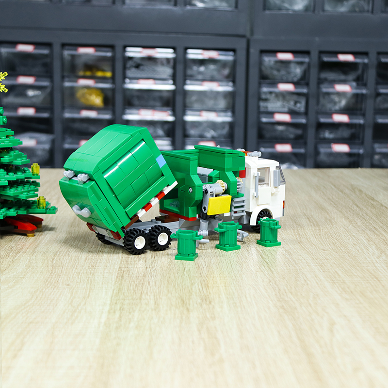 Color classification: green and white sanitation vehicle, white sanitation vehicle
