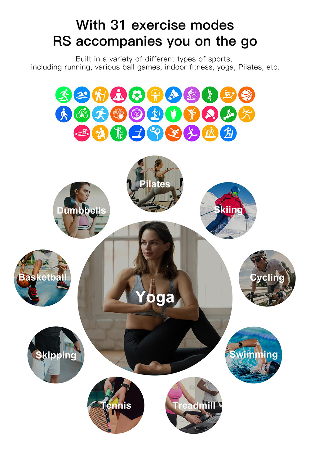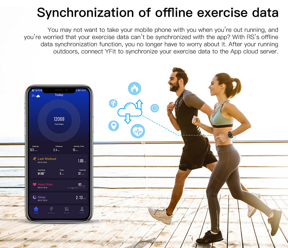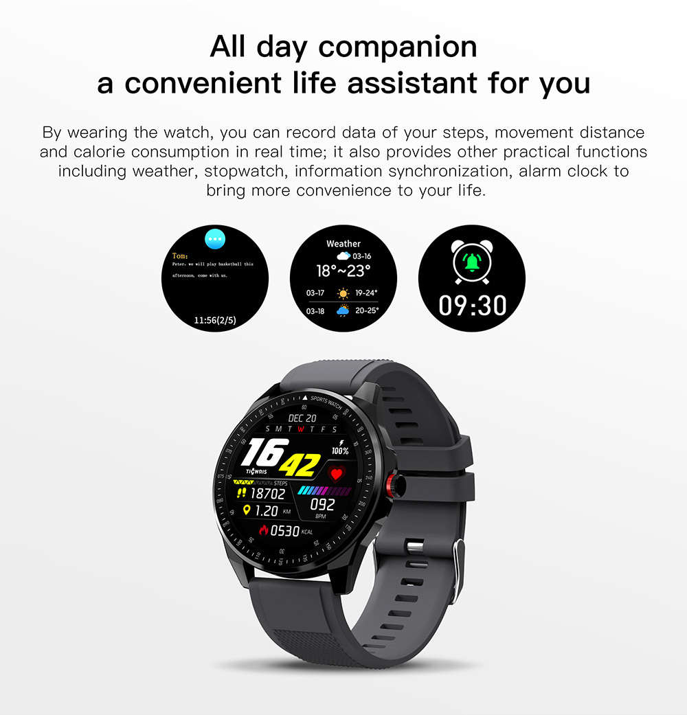 Additional features: step counting, monitoring, intelligent reminder, remote control selfie, health monitoring, information push, exercise tracking, sleep analysis