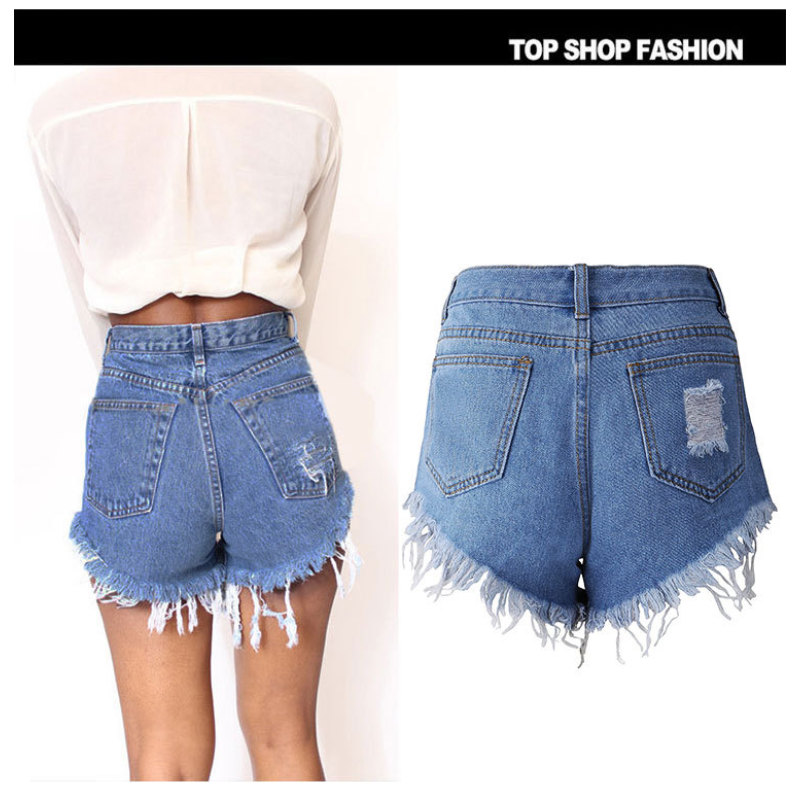 Irregular Cat Whiskers Fringed High Denim Shorts