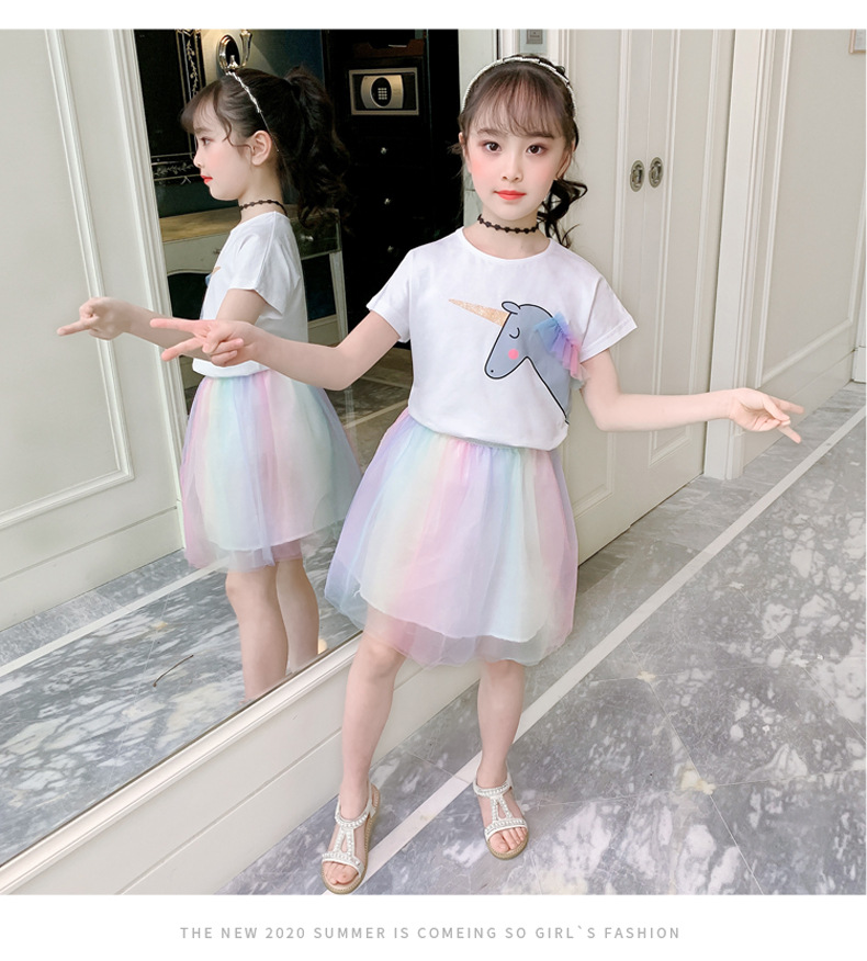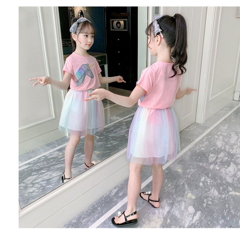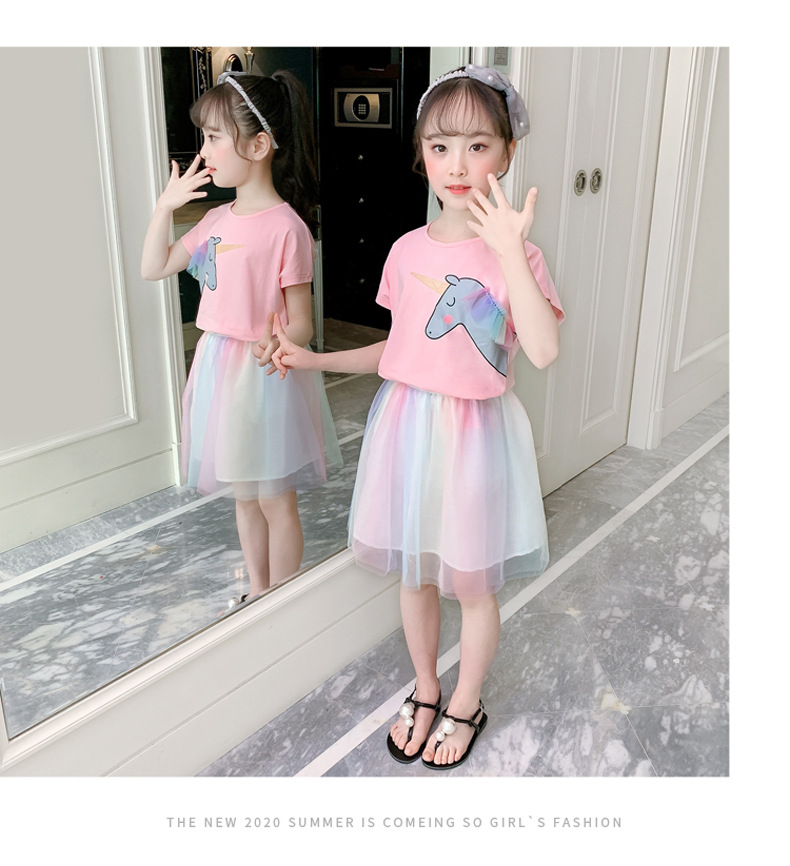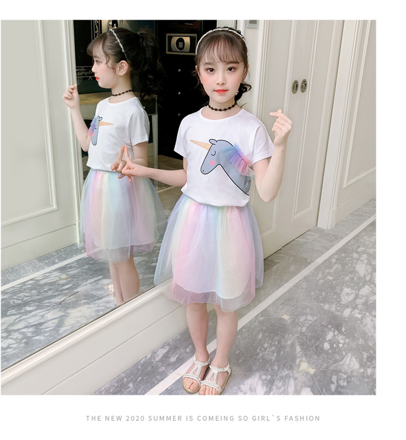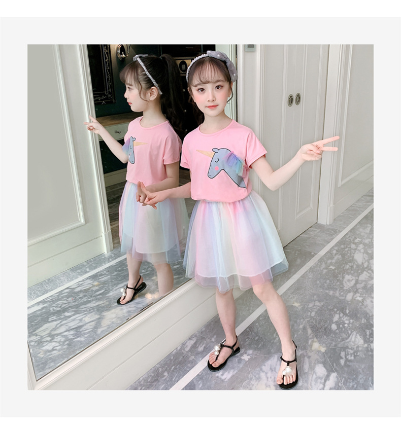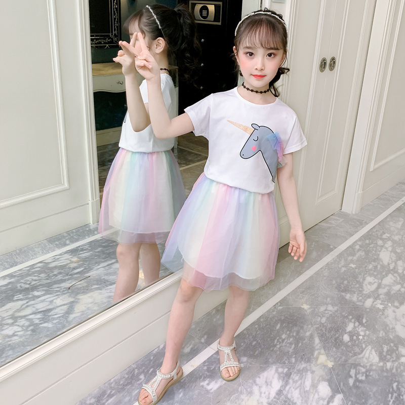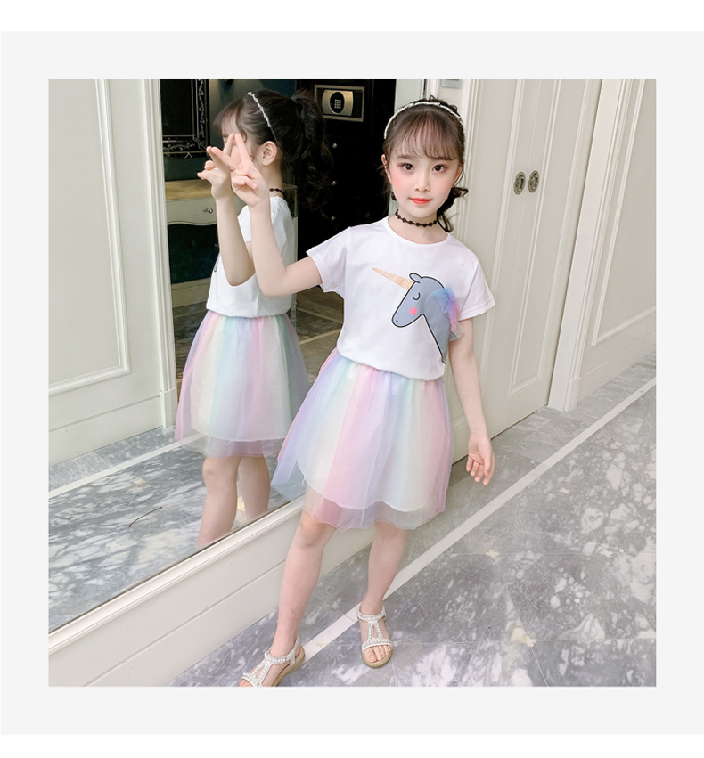 Girls' suit, Western Style, Female Short-sleeved Dress, Unicorn Fashionable Two-piece Suit