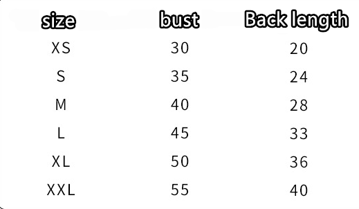 Size: XS (recommended 1-3 kg), S (recommended 3-5 kg), M (recommended 5-8 kg), L (recommended 8-11 kg), XL (recommended 11-15 kg), XXL (recommended) 15-20 kg)