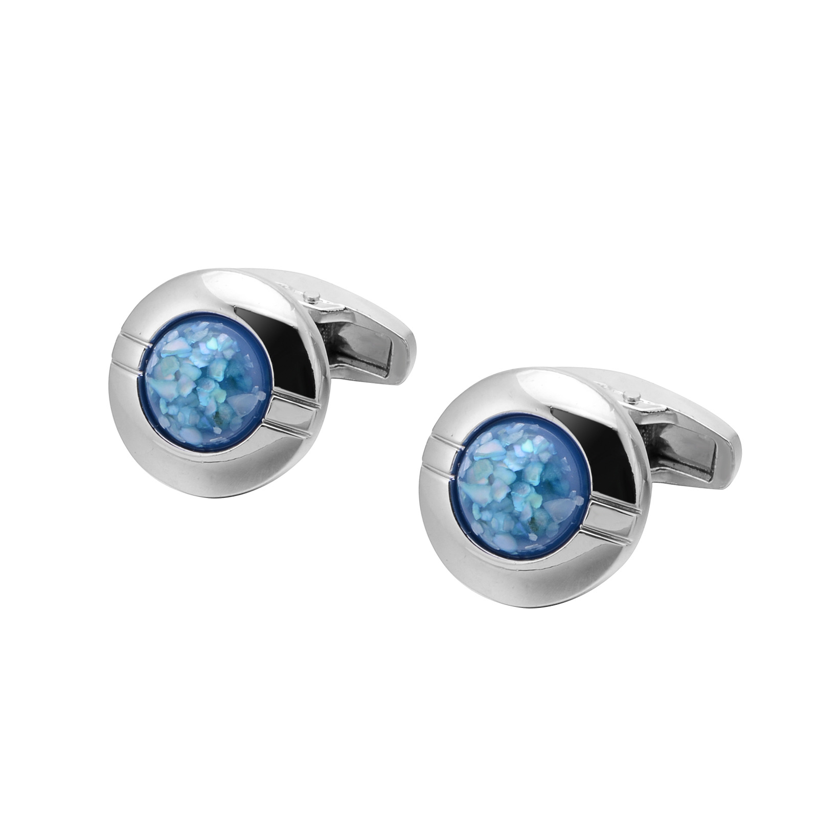 Round French Shirt Cufflinks Inlaid With Sky Blue Crystals