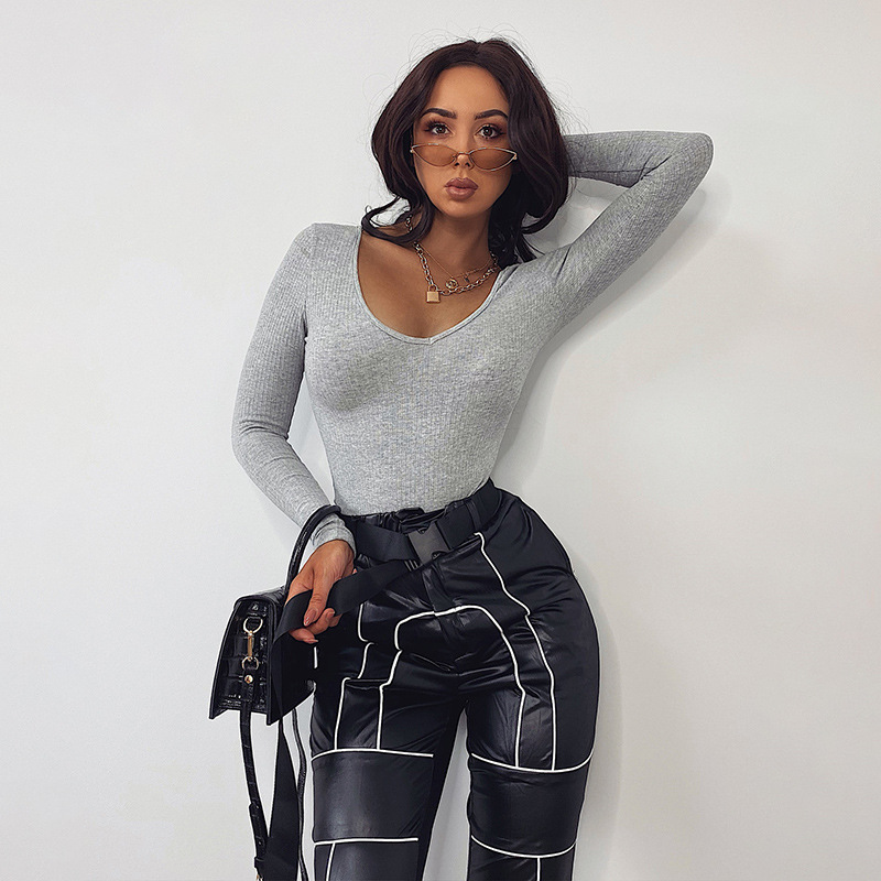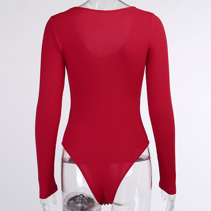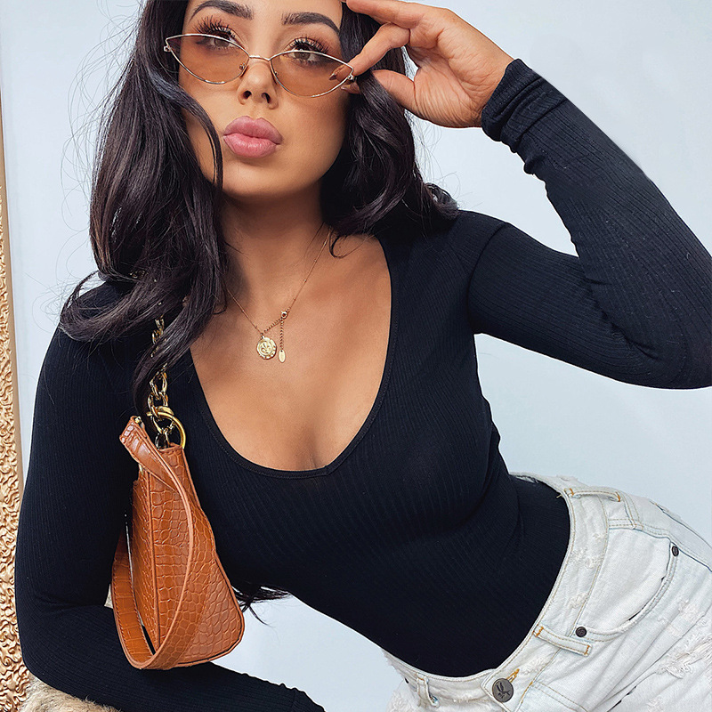Autumn And Winter Sexy Slim Bottoming Long-sleeved T-shirt Solid Color One-piece Bottoming Shirt