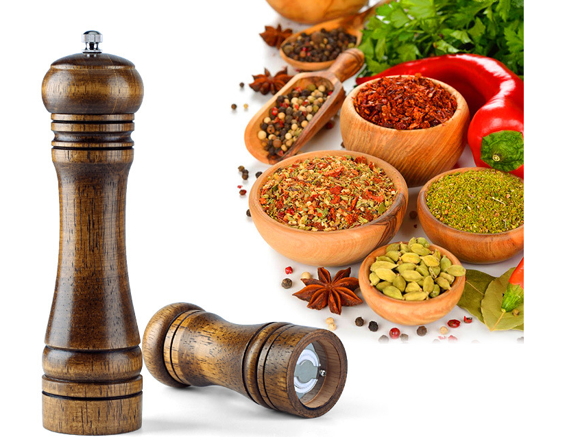 5 8 10 Salt and Pepper Grindar, Solid Wood Spice Pepper Mill with Strong Adjustable Ceramic Grinder Kitchen Cooking Tools
