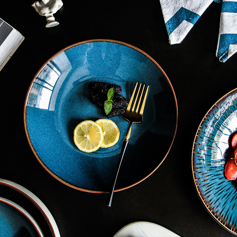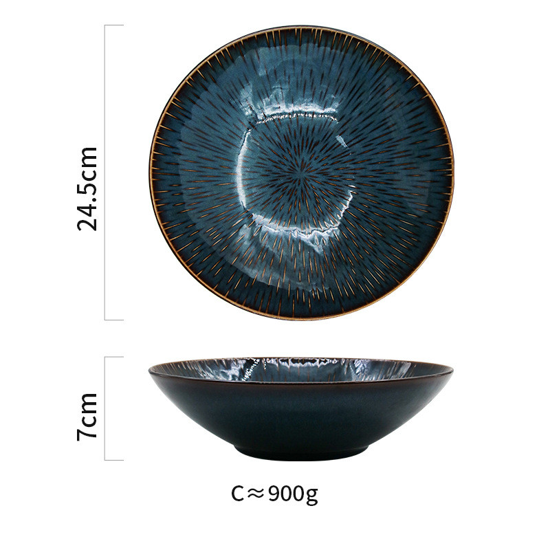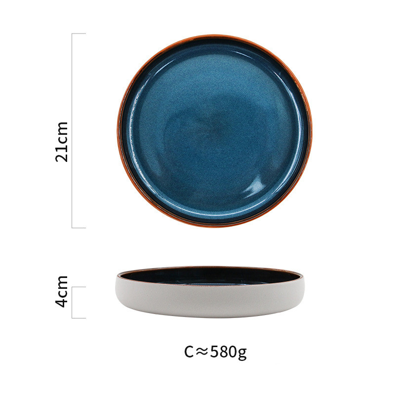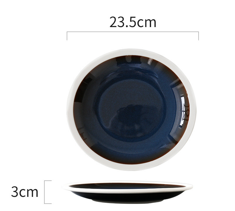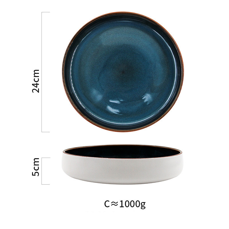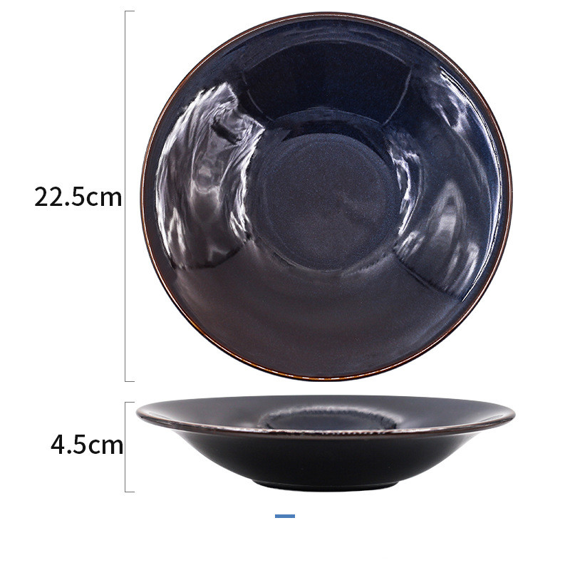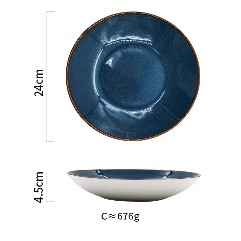 Color: 1 brown wire kiln becomes blue high bowl 24.5cm, 2 brown wire kiln becomes blue short bowl 24cm, 3 kiln becomes blue and dark green deep dish, 4 brown wire kiln becomes blue large shallow dish 24cm, 5 brown wire kiln becomes blue medium shallow dish 21cm, 6 Royal blue brown-edged salad plate, 7 kiln becomes blue and white line-large, 8 kiln becomes blue and white line-medium, 9 kiln becomes blue and white line-small
