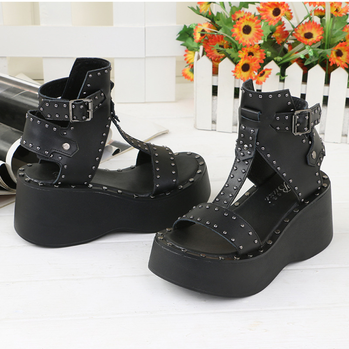 Popular Elements: Metal, Belt Decoration, Stitching, Rivets, Wedge Heel,