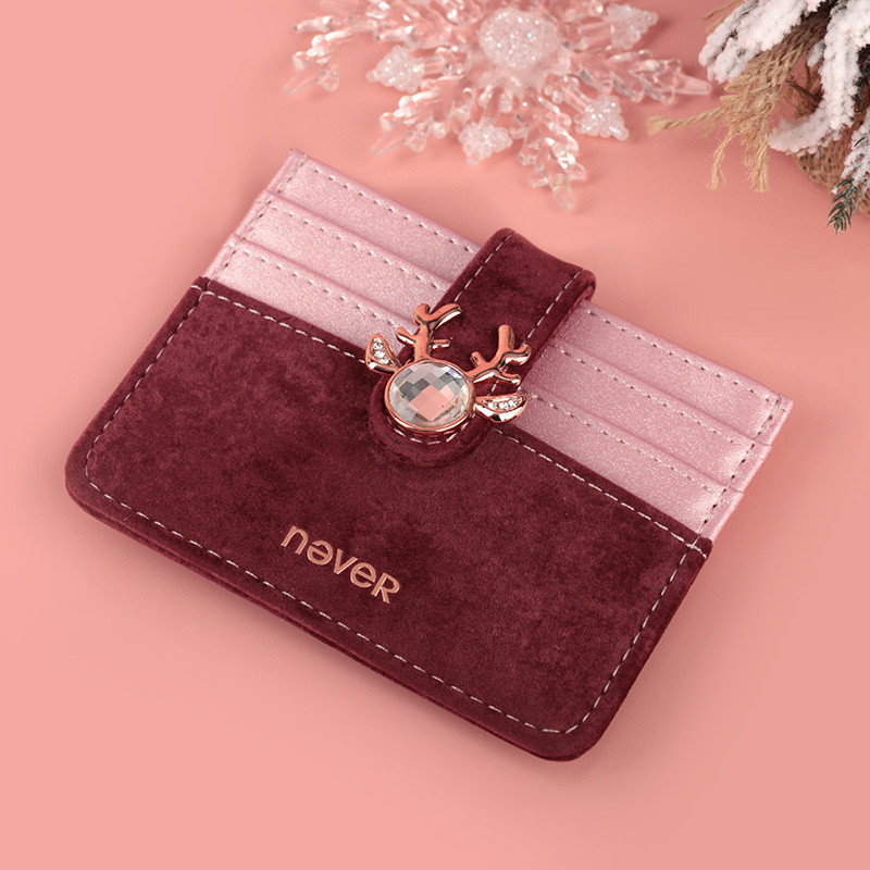 Ice and snow series card holder female compact, ultra-thin, high-end high-capacity card card bag evidence PU suede card holder cute 7 card seat elk birthday gift gift