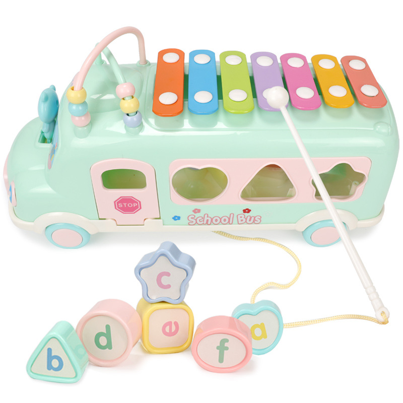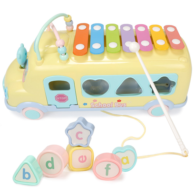 Color: Baby puzzle school bus on piano (yellow), baby puzzle school bus on piano (green),