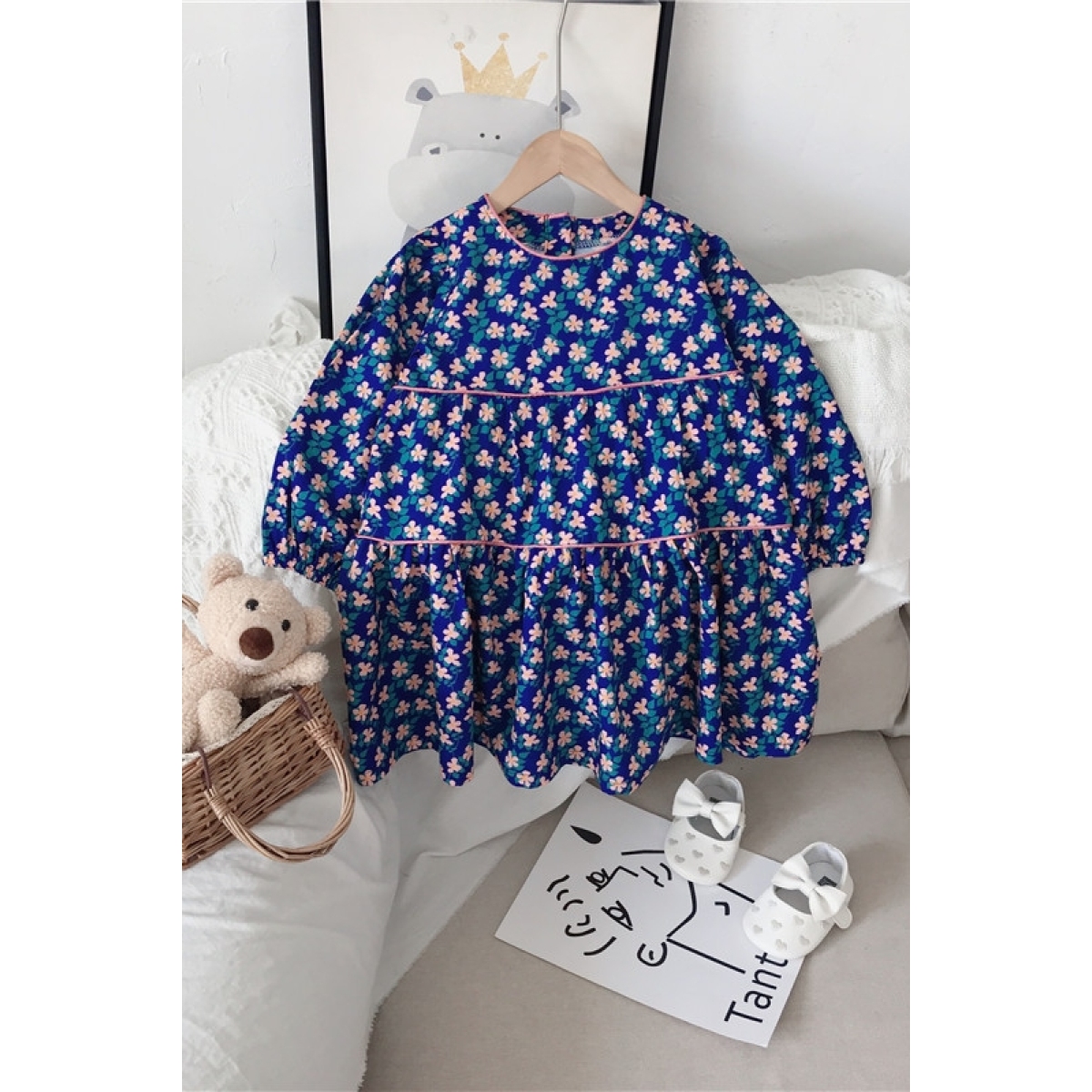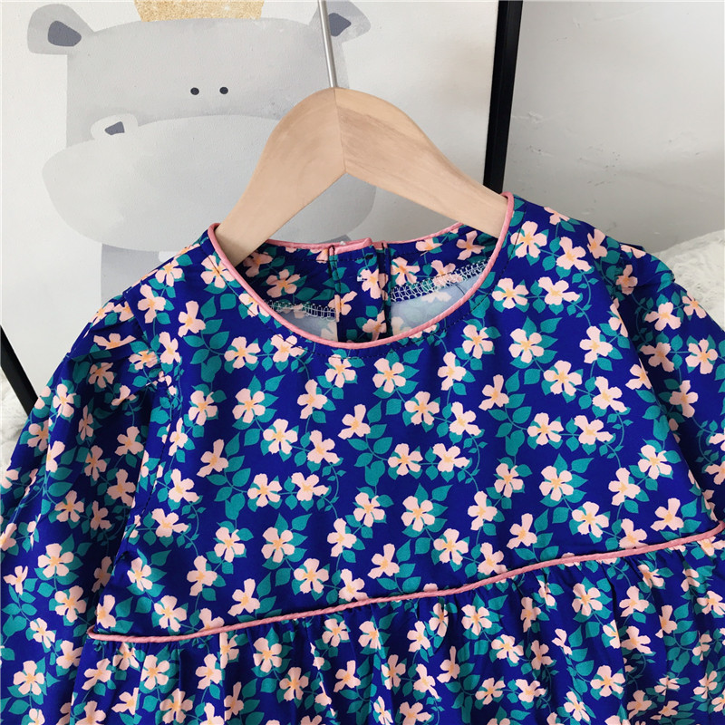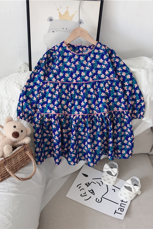 Korean Version Of The Net Red Girls Long-Sleeved Chiffon Floral Dress