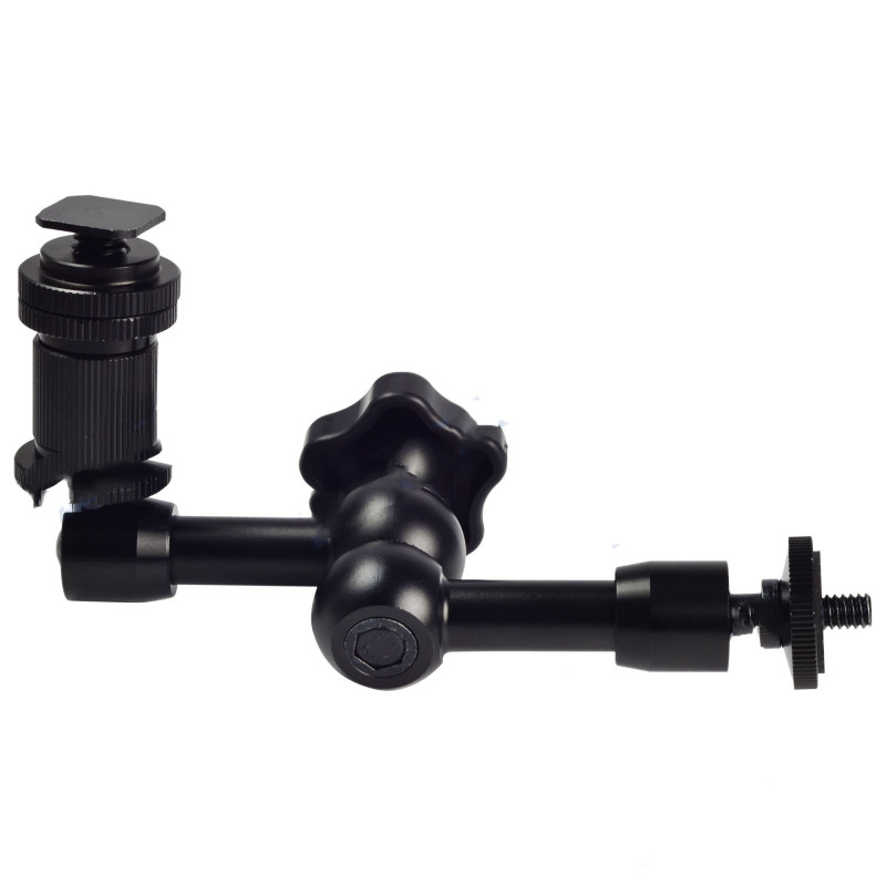 7-inch magic arm with hot shoe mount and camera mount for DSLR cameras. It is very suitable for mounting LED, LCD monitor, flashlight on camera, tripod, etc.