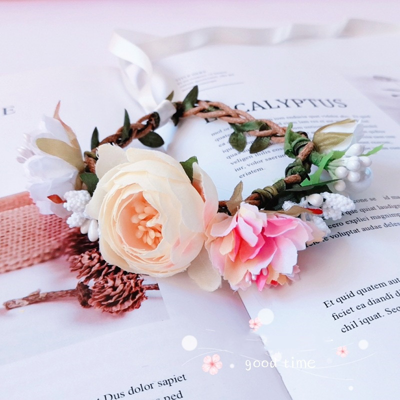 Material: artificial flowers and twist green leaf rope