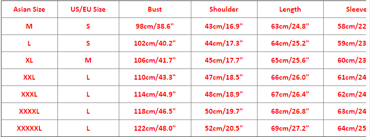 1. Asian sizes are 1 to 2 sizes smaller than European and American people. Choose the larger size if your size between two sizes. Please allow 2-3cm differences due to manual measurement.