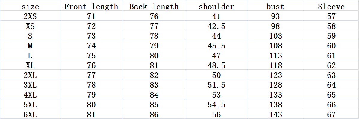 Size: XXS, XS, S, M, L, XL, 2XL, 3XL, 4XL