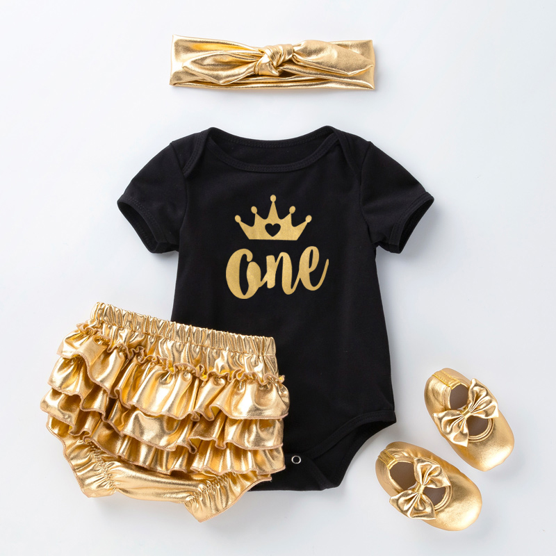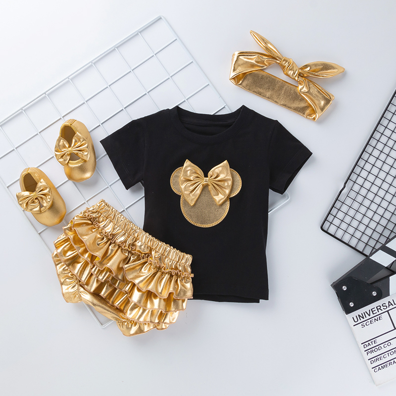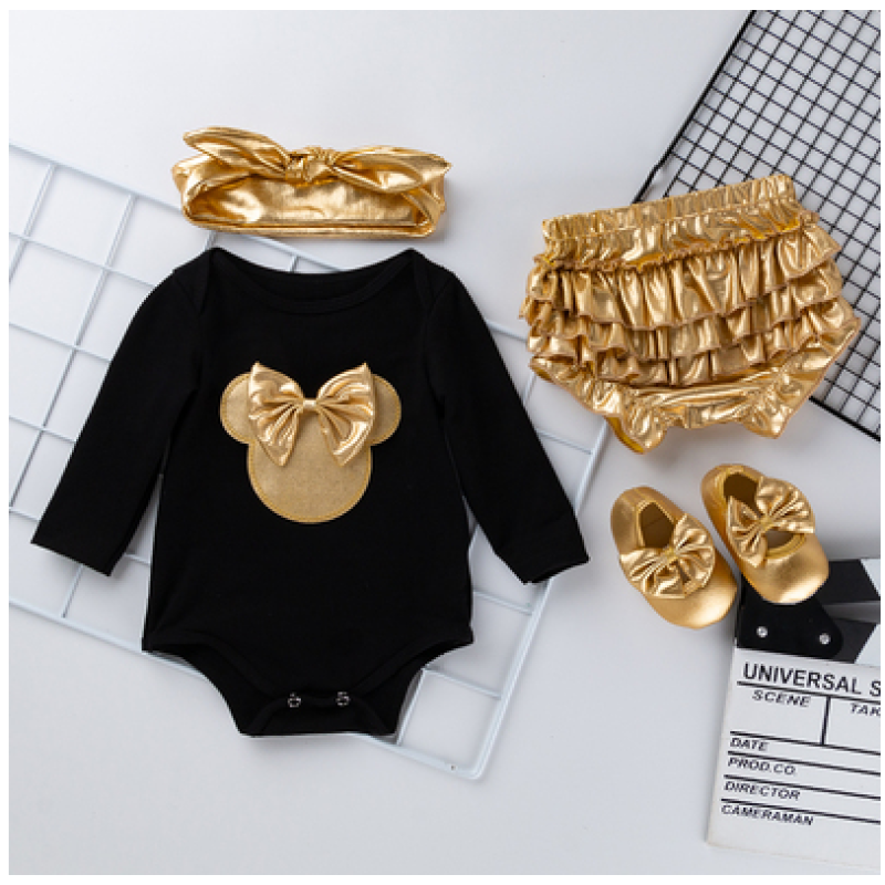E: Black color cotton cartoon one+PP pants four-piece combination