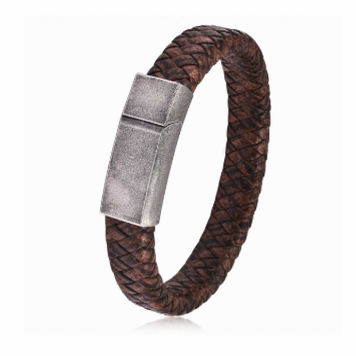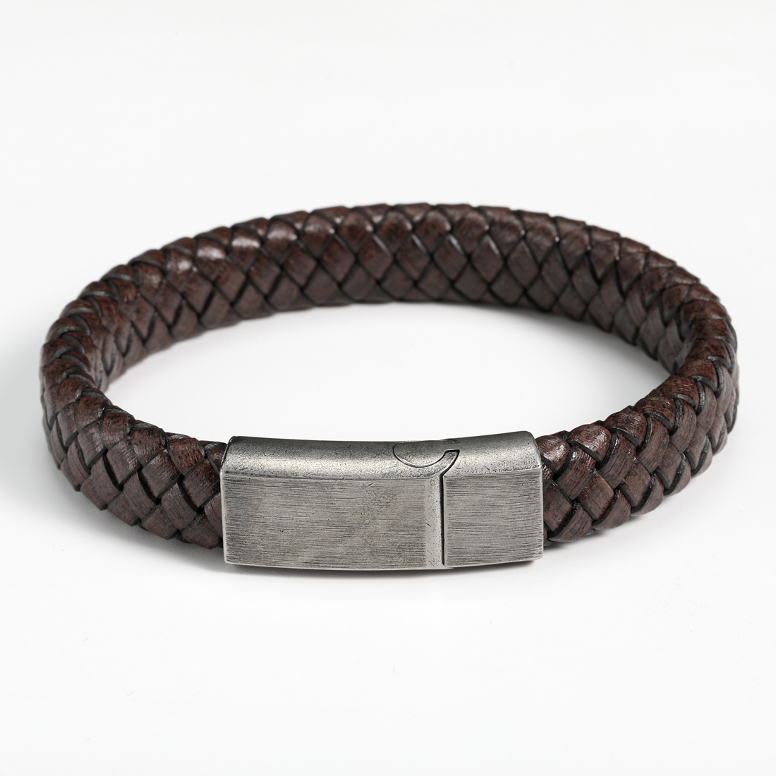 B: Steel-colored titanium buckle + brown leather cord - 20.5cm