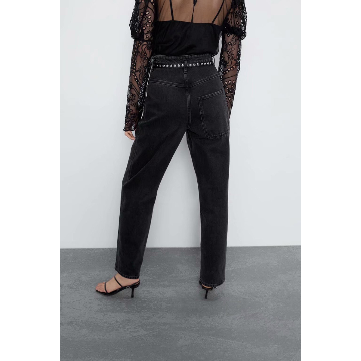 Color: 1706 loose straight black jeans