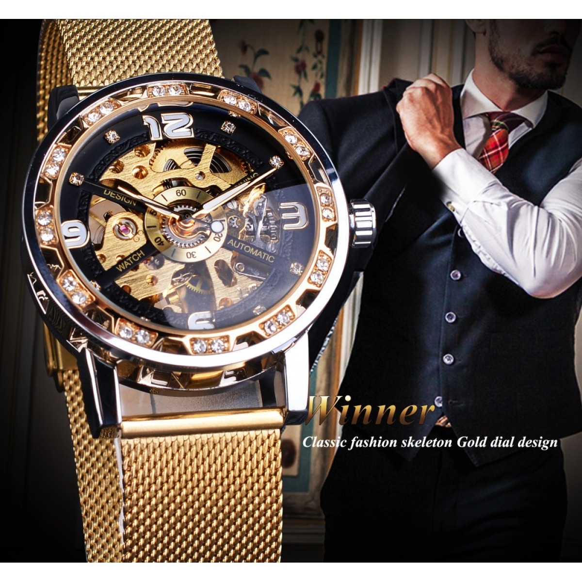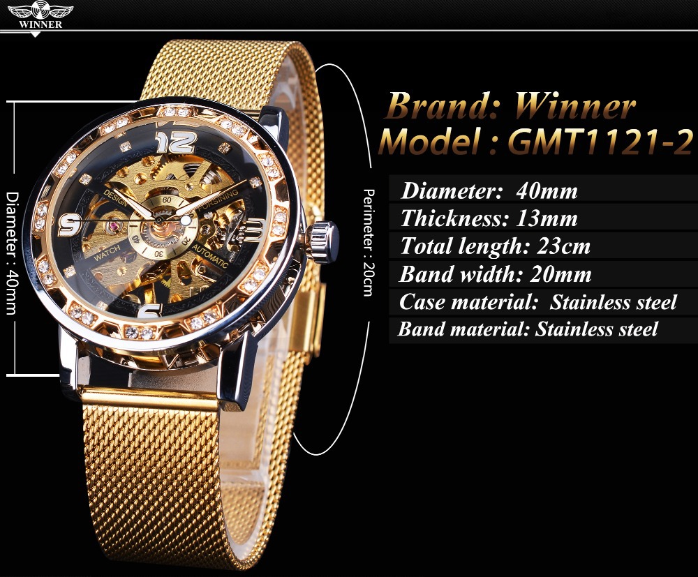 Mesh Belt Hollow Rhinestone Manual Mechanical Watch