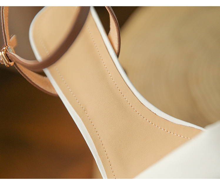 Color Matching Block Heel High Heels Women's Leather Open Toe Sandals With One Word Buckle